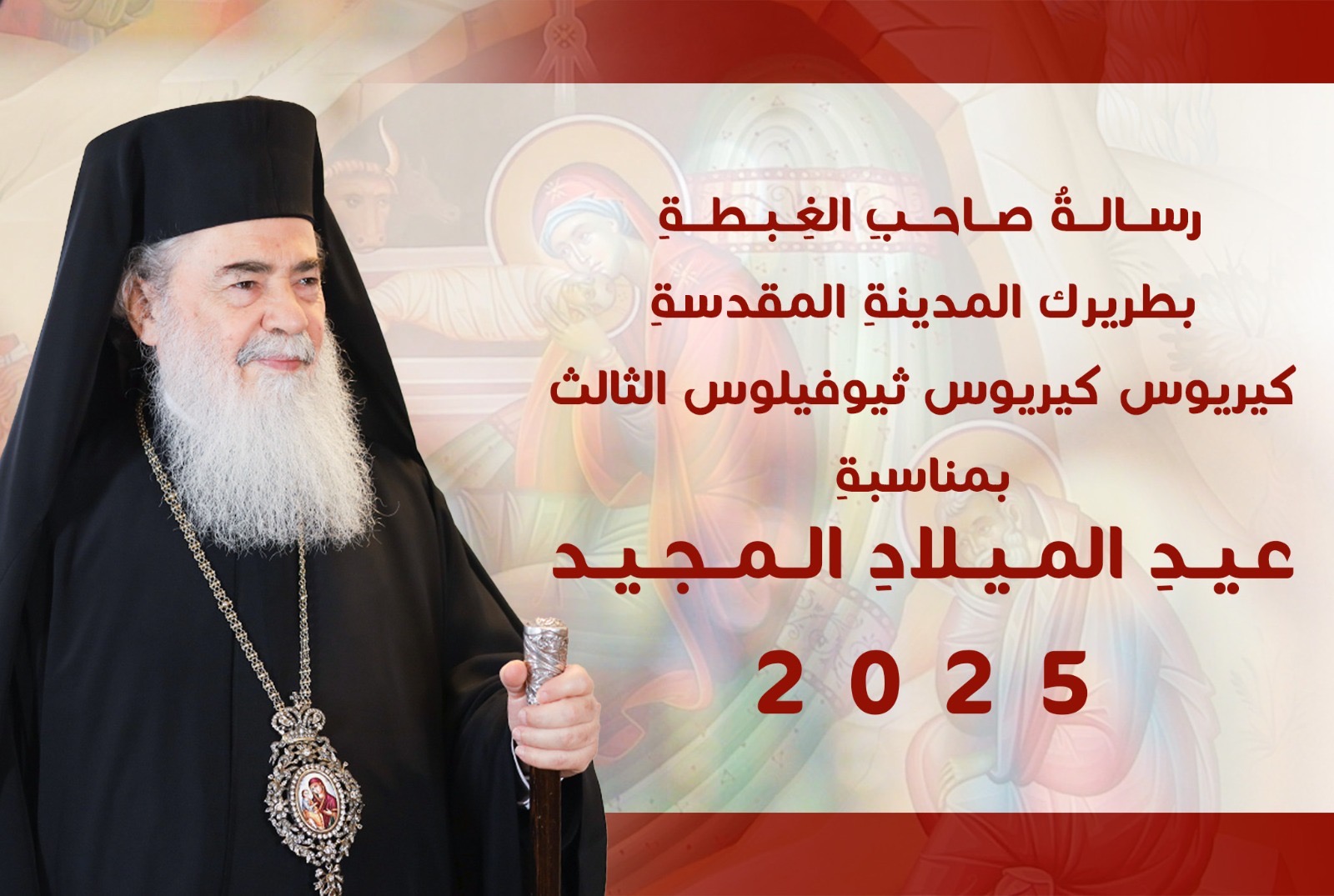 رسالةُ صاحبِ الغِبطةِ بطريرك المدينةِ المقدسةِ كيريوس كيريوس ثيوفيلوس الثالث بمناسبةِ عيدِ الميلادِ المجيد 2025