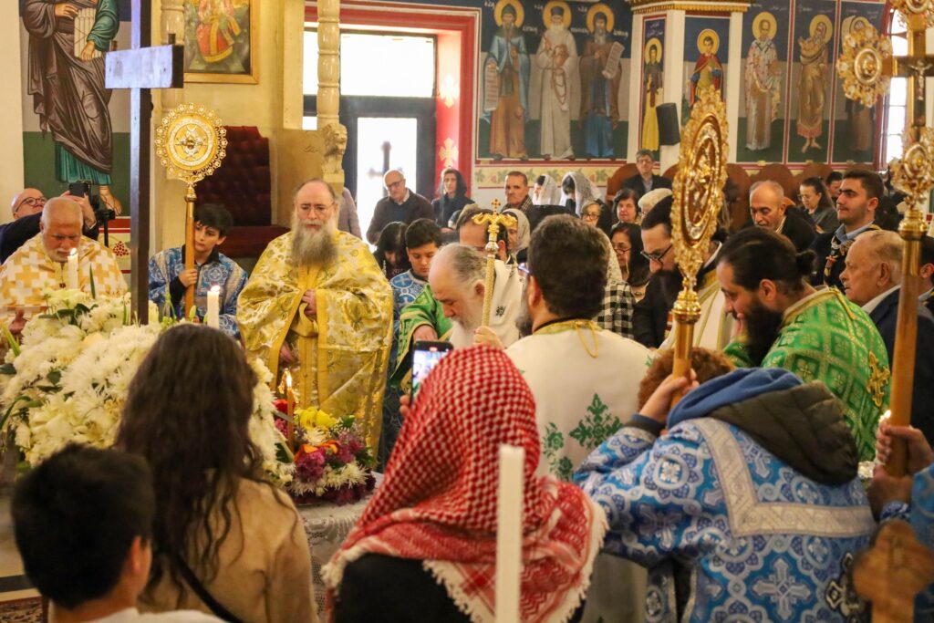 23 آذار 2025 صورٌ من خدمةِ القدّاسِ الإلهيّ ( اللّيتورجيّا الإلهيّة ) الذي ترأسَه سيادة المطران خريستوفوروس في كاتدرائيّةِ البشارة – العبدلي بمناسبةِ أحد السجودِ للصّليب . في عظةِ الإنجيلِ قالَ سيادتُه أنّنا نرفعُ اليومَ الصّليب الذي صُلب عليه الرّبُّ يسوع ليفدينا ويصلبَ الخطيئةَ في قلوبِنا ، لنتمَّ شوطَ صومِنا بنشاط ، فالصّليب هو نمطُ حياة ، ونحن مدعوّونَ للحياةِ بموجبِه ، مختارين بكامل حرّيّتِنا السّيرَ في الطّريقِ الضّيّقِ للملكوتِ السّماوي ، ضارعًا أن تشملَ بركةُ الصّليبِ جميعَ المرضى والمضطهَدين في سوريّا وغزة والعالمَ أجمع . ثمّ أقيمَ زيّاحٌ كبيرٌ بالصّليبِ الكريمِ المحيي منتصبًا في وسطِ الكنيسة . عاونَهُ في الخدمةِ الأرشمندريتان روفائيل وسابا والآباء فرح وإيرينيوس وسمعان ورئيسُ الشّمامسة سلفستروس والشّمّاس خريسانثوس بحضورِ الرّعيّة.