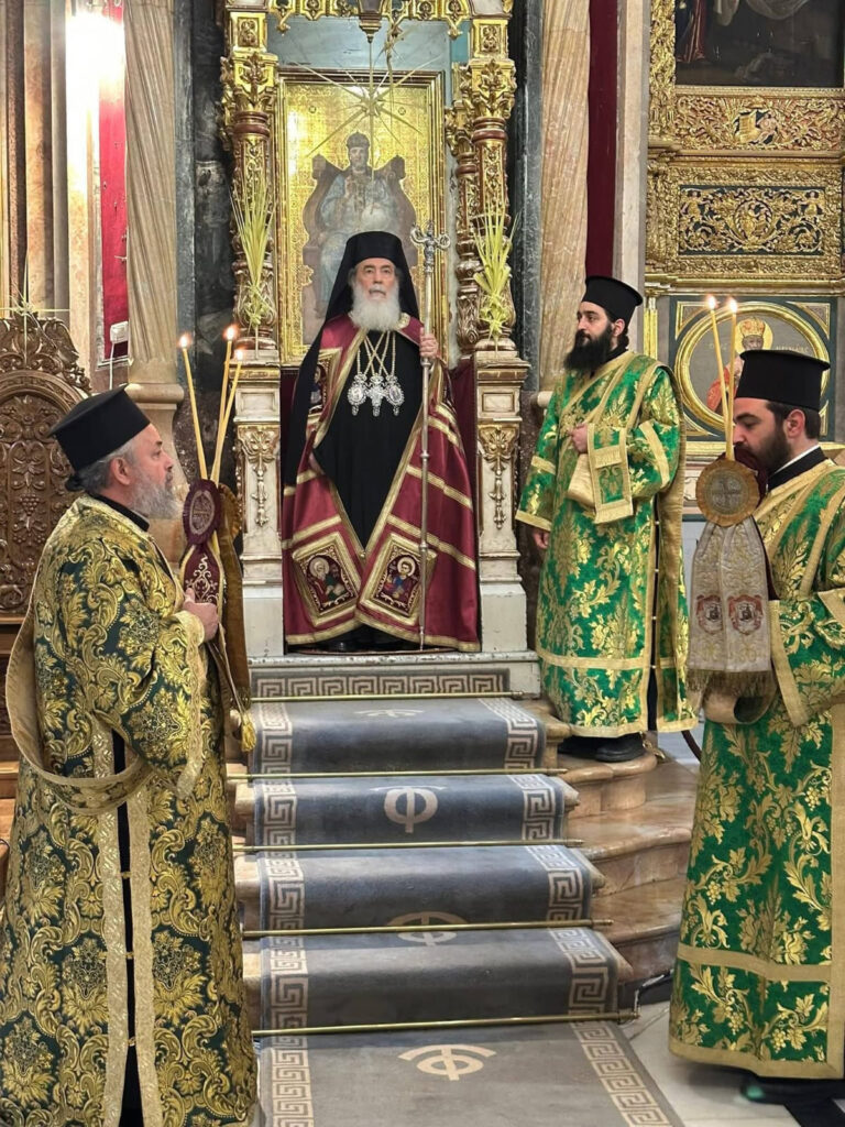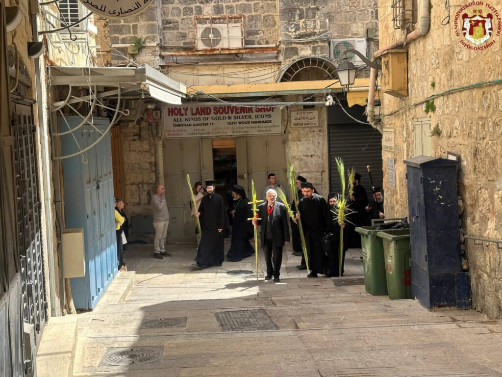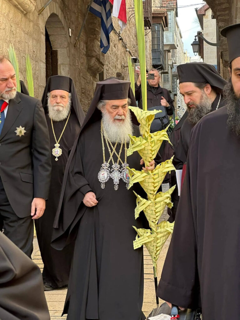 غِبطة البَطريرك ثيوفيلوس ترأس قداس أحد الشعانين بمُرافقة عَدد مَحدود جداً داخل كنيسة القِيامة من أساقفة وكهنة وشمامسة ورهبان والقنصل اليوناني العام، مع الحفاظ على تقاليد البلدة القديمة المَعمول بها مُنذ زمن بَعيد مِثل حُضور مُختار الرّوم الأرثوذكس جورج قمر الذي يَتقدم المَوكب البطريركي بحسب الأصول وتقاليد أهل القدس.