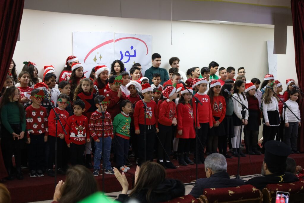 قدّم أبناءُ مدارسِ الأحدِ أناشيدَ وتراتيلَ ميلاديّة، مع عرضٍ مسرحيّ تضمّن سكتشَ ” نشرة إخباريّة عن ميلاد الرّبّ يسوع ” ، ومسرحيةَ “الطّفل يسوع” التي تحدّثت عن كيفيّة استقبال الطّفلِ يسوع في حياتنا.