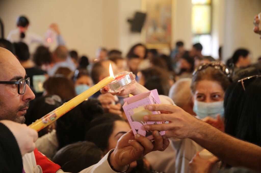 إستقبالٌ شعبيّ حاشِدٌ لنور القبر المقدّس في كنيسةِ الصّعودِ الإلهيّ في خلدا – عمّان، حمَلَهُ صاحبُ السّيادةِ المطران خريستوفوروس للمؤمنين