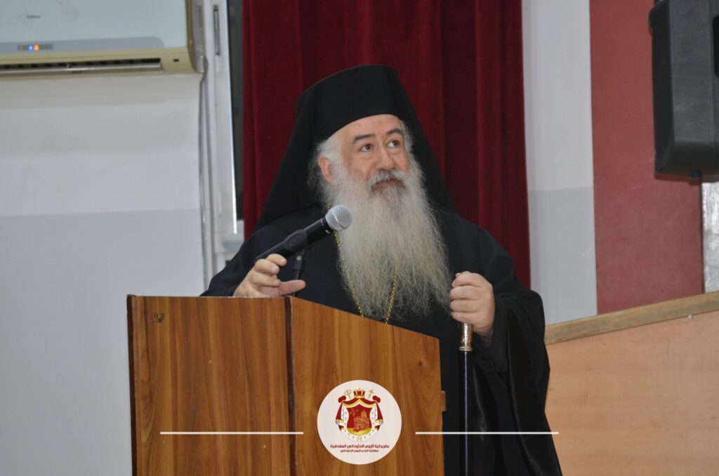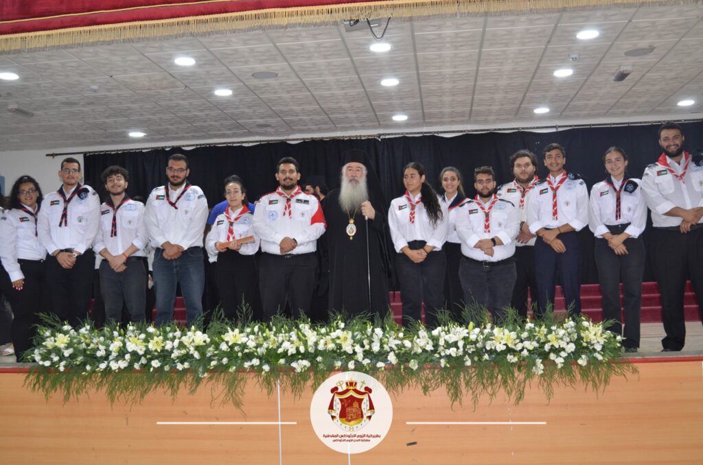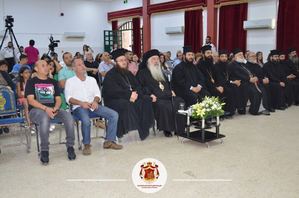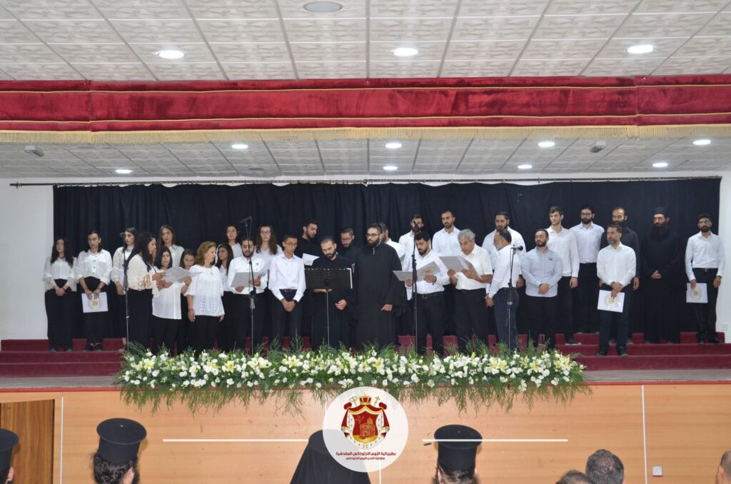 مطرانيّةُ الرّومِ الأُرثوذكس / المركزُ الإعلاميّ مأدبا، الأربعاء 5 تمّوز 2023 اختُتمت فعاليّاتُ مخيّمِ القدّيس يوحنّا كوكوزاليس للموسيقى المنعقد في مأدبا بأمسيةِ تراتيل بيزنطيّة قُدِّمَت على مسرح مدرسةِ بطريركيّةِ الرّومِ الأُرثوذكس حضرَها سيادةُ المطران خريستوفوروس وقدسُ الأرشمندريت يرونيموس الوكيلُ البطريركيّ في مأدبا ولفيفٌ من الآباءِ الأجلّاءِ والشّمامسةِ بالإضافةِ الى ذوي الطّلابِ ورعيّةِ مأدبا. افتُتِحَتِ الأمسيةُ بترتيل طروباريّةِ القدّيس يوحنّا كوكوزاليس ثمّ قدّمت كلّ مجموعة مع أستاذها مجموعةً من التّراتيلِ والأناشيدِ التي تدرّبوا عليها خلال انعقادِ المخيّم. وفي كلمتِه أكّدَ سيادةُ المطران على أهمّيّةِ مأسَسَةِ التّرتيلِ الرّومي (البيزنطيّ) للنّهوض به. وقد أثنى على جِدِّيَّةِ العملِ لما له من ضرورةٍ كنسيَّةٍ، كما طلبَ سيادتُهُ من الأساتذة والطّلابِ الاهتمامَ بالقاعدةِ الرّوحيّةِ خلالَ التّرتيل في كنائِسِهم وخلالَ عملهِم في مدرسةِ التّرتيل الرّوميّة وأهمّها روحُ التّواضعِ والمحبّة. كما ثمّنَ سيادتُه جهودَ جميعِ الإخوةِ الذين بنوا وتعبوا للوصولِ الى هذا المستوى من التّرتيل في المملكة. وفي ختامِ الحفلِ قدّمت أيقونةُ المخيّم التّذكاريّةِ لسيادتِه عربونَ شكرٍ ومحبّةٍ، وللرّاهب ليونديوس القائمِ على المخيّمِ ومسؤولِ مدرسةِ بسالتيريون؛ كما قُدِّمَ درعُ المخيّم لقائدِ كشّافةِ ومرشداتِ الرّومِ في مأدبا، القائد لورنس بطارسة، تقديرًا لجهودِهِم في تنظيمِ المخيّم.