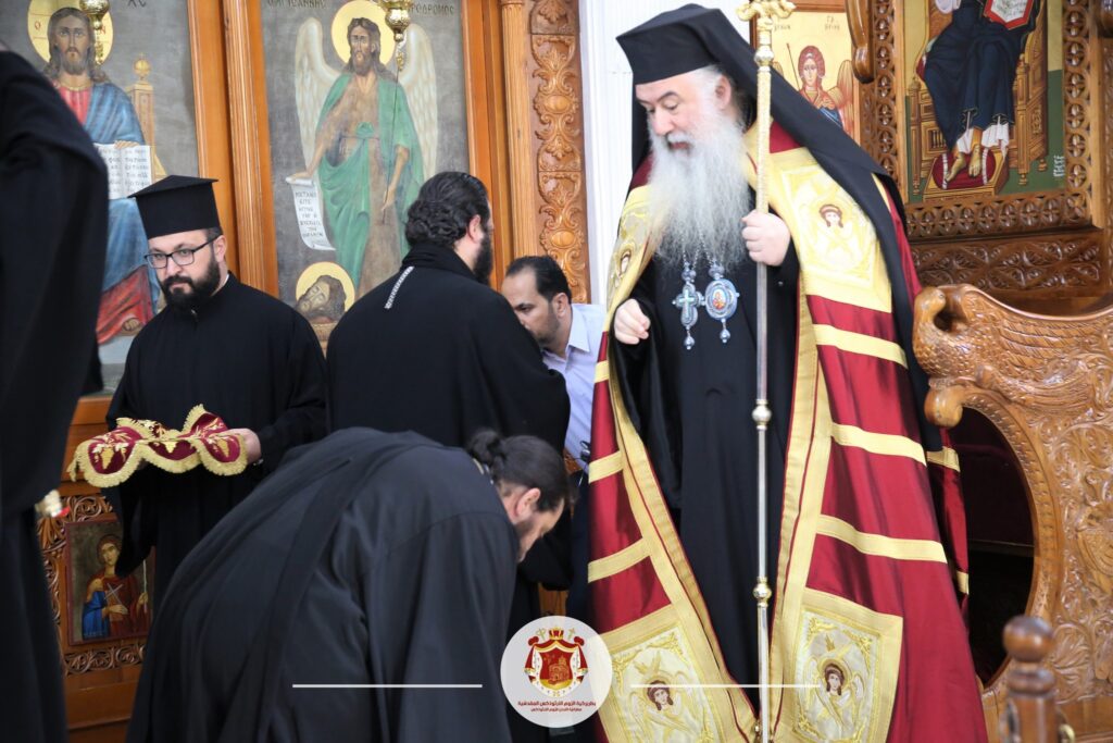 مطرانيّةَ الرّومِ الأرثوذكس / المركزُ الإعلاميّ العقبة ، الجمعة 4 تشرين الثّاني 2022 صورٌ من خدمةِ القدّاسِ الإلهيّ ( الّليتورجيّا الإلهيّة ) الذي ترأسَهُ سيادةُ المطران خريستوفوروس من كنيسةِ القدّيس نيقولاوس – العقبة ، سلمَ خلالَهُ قدسَ الأرشمندريت أندراوس مهامَّهُ رئيسًا روحيًّا على محافظةِ العقبة . في نهايةِ الخدمَةِ تلا الأرشمندريت خريستوفوروس رسالةَ غبطةِ البطريرك كيريوس كيريوس ثيوفيلوس الثّالث وقرارَ المجمعِ المقدّسِ إقامةَ الأرشمندريت أندراوس رئيسًا روحيًّا على محافظةِ العقبة . ثمَّ توجّهَ سيادةُ المطران إليه قائلاً: إنَّ غبطةَ البطريركِ وأعضاءَ المجمعِ المقدّسِ يثقونَ بك ويعتمدونَ عليكَ لخدمةِ ورعايةِ الكنيسةِ والمؤمنين ، ومن جهتي فقدِ اختبرتُكَ منذ سنينَ عديدةٍ علمانيًّا وراهبًا واستشعرتُ محبّتَكَ وغيرتَكَ للكنيسةِ واليومَ أختبِرُكَ رئيسًا روحيًّا ، معَ الأبِ توما راعي الكنيسة ، لنكونَ كما دعانا السّيّدُ المسيحُ اليومَ في إنجيلِهِ المقدّسِ طاهرينَ أنقياءَ لا نهتَمُّ بالأرضيّاتِ الزّائلة ، لنموتَ يوميًّا من أجلِ الكنيسةِ والرّعيّةِ التي افتداها بدمِهِ على عودِ الصّليب ، إهتَمَّ بالخِدَمِ الّليتورجيَّةِ والصّلواتِ اليوميّةِ من أجلِ الرّعيّةِ في هذا الدّيرِ المقدّس ، ديرِ القدّيسِ نيقولاوس ، فَعِّلْ سرَّ التّوبَةِ والاعتراف ، اعتَني بمدارسِ الأحدِ والشّبيبةِ وجميعِ الِّلجان ، معَ الزّياراتِ المستمِرَّة ، كما اعلنَ سيادتُهُ عن تأسيسِ مكاتبَ للمحكمةِ الكنسيّةِ في الكرك والبلقاء وشمالِ المملكةِ لخدمةِ أبناءِ الرّعيّة . عاونَهُ في الخدمةِ الأرشمندريتيّون أندراوس وأثناسيوس وخريستوفوروس وسابا وسلوان والأب توما راعي الكنيسة والأب بورفيريوس والشّمامسة سلفستروس ونيكيفوروس بحضورِ قدسِ الأب باسيليوس والأم إيرينيا رئيسة ديرِ السّيّدةِ العذراء ينبوع الحياة وأخويَّتِها ورعيَّةِ العقبة .