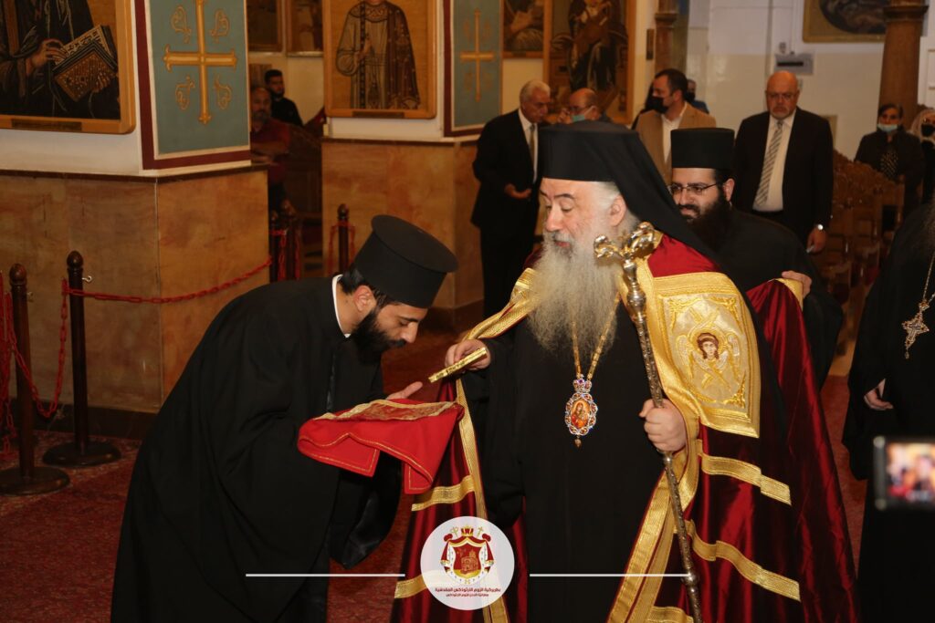 في ختامِ الخدمةِ سلّمَ سيادتُهُ قدسَ الأرشمندريت إيرونيموس مهامَّهُ الرِّعائيّةَ وكيلًا بطريركيًّا على مأدبا خَلَفًا للأرشمندريت روفائيل الذي تقلّدَ منصِبَ مندوب البطريركيّة المقدسيّةِ في أثينا، تنفيذًا لقراراتِ المجمعِ الأورشليميّ المقدّس السّابقة. تمنّى صاحب السّيادة للأرشمندريتَين التّوفيقَ في مهامِّهما.