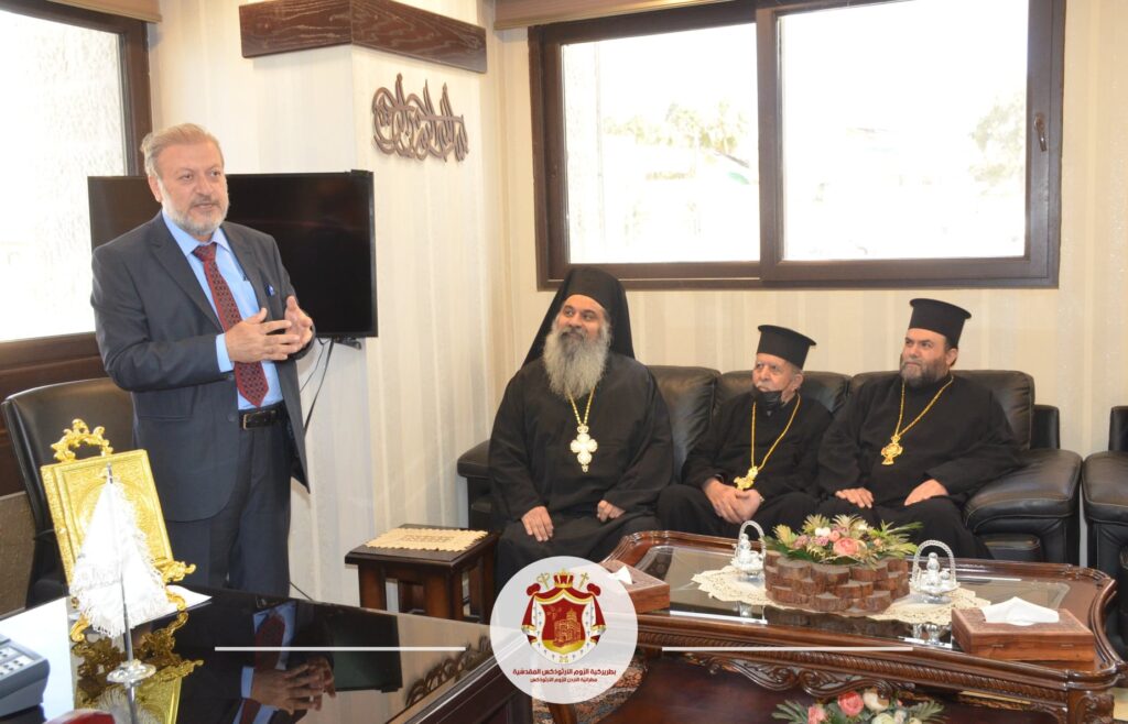 زارَ وفدٌ من كهنةِ ووجهاءِ لجانِ الرَّعيَّة الأرثوذكسيّةِ في إربد برئاسةِ قدسِ الأرشمندريت فينيذكتوس كيّال الوكيلِ البطريركيّ في شمالِ المملَكَة، اليومَ الثّلاثاء د. نبيل الكوفحي رَئيسَ بلديةِ إربد الكبرى في مكتبِهِ في مبنى البلديَّة، مُهنِّئينَ بمناسبةِ انتخابِهِ رئيسًا للبلديّةِ ا بحلولِ شهرِ رمضانَ الفضيل.