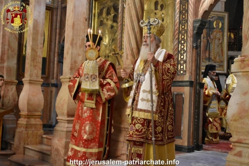 في عشية العيد ترأس صاحب الغبطة صلاة الغروب الكبرى في كنيسة القيامة بمشاركة آباء أخوية القبر المقدسوذلك بعد بعدما جرى إقامة خدمة صلاة الساعة التاسعة في كنيسة القديسين قسطنطين وهيلانة في البطريركية وذلك حسب الترتيب الكنسي البطريركي.