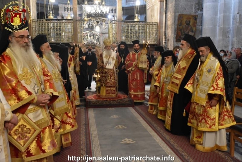 وصباح اليوم التالي أقيمت خدمة القداس الإلهي في كنيسة القيامة المقدسة ترأسها صاحب الغبطة كيريوس كيريوس ثيوفيلوس الثالث بمشاركة لفيف من أصحاب السيادة المطارنة و الآباء الكهنة أخوية القبر المقدس والشمامسة، بحضور القنصل اليوناني العام في القدس وعدد من الرهبان والراهبات والمصلين من أبناء الرعية والجالية اليونانية في البلدة القديمة. وعقب القداس أقيمت صلاة المجدلة الكبرى تذكاراً للشهداء الأربعين ولعيد إسم صاحب الغبطة.