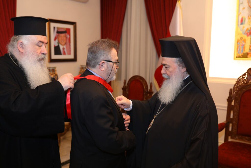 مطرانيَّةُ الرّومِ الأُرثوذكس / المركزُ الإعلاميّ عمّان، الأربعاء 21 شباط 2024 قلّدَ صاحبُ الغبطة كيريوس كيريوس ثيوفيلوس الثّالث بطريركُ المدينةِ المقدّسةِ الإثنين الماضي في دار المطرانيّةِ في عمّان وبحضورِ سيادةِ المطران خريستوفوروس الأستاذ قسطنطين كسينوبولوس المشرفَ على مدرسةِ الرّسمِ البيزنطيّ في الأردنّ صليبَ القبرِ المقدّسِ تقديرًا لجهودهِ المباركةِ في خدمةِ كنيستِنا الأرثوذكسيّةِ في الأُردنِ من خلال كتابةِ وترميمِ العديدِ من الأيقوناتِ في كنائس المملكةِ وكان أخرُها كنيسةُ الأقمارِ الثّلاثةِ في المركزِ الأرثوذكسيّ – دبّين، كما ولجهودهِ المباركةِ في تنميةِ مهاراتِ فنِّ كتابةِ الأيقوناتِ لجيلٍ من أبناءِ الكنيسةِ المقدسيّةِ في الأردنّ من خلالِ مدرسةِ الرّسمِ التّابعةِ لدارِ المطرانيّة.