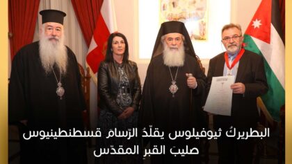 وفي اليوم العاشر من شهر حزيران سنة ٢٠١٣، مَنَح جلالة الملك عبد الله الثّاني بن الحسين غبطة البطريرك كيريوس كيريوس ثيوفيلوس الثالث بطريرك المدينة المقدسة وسائر أعمال فلسطين والأردنّ وِسَام النهضة العالي الشأن من الدرجة الأولى، تقديرًا للصفات الحميدة والحوار بين الأديان.