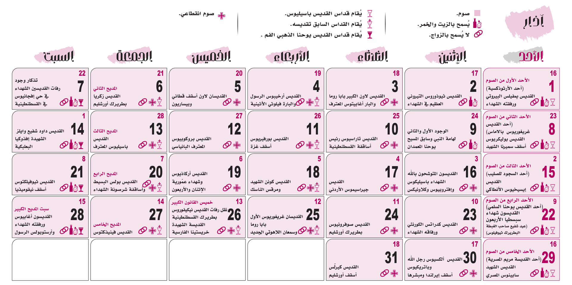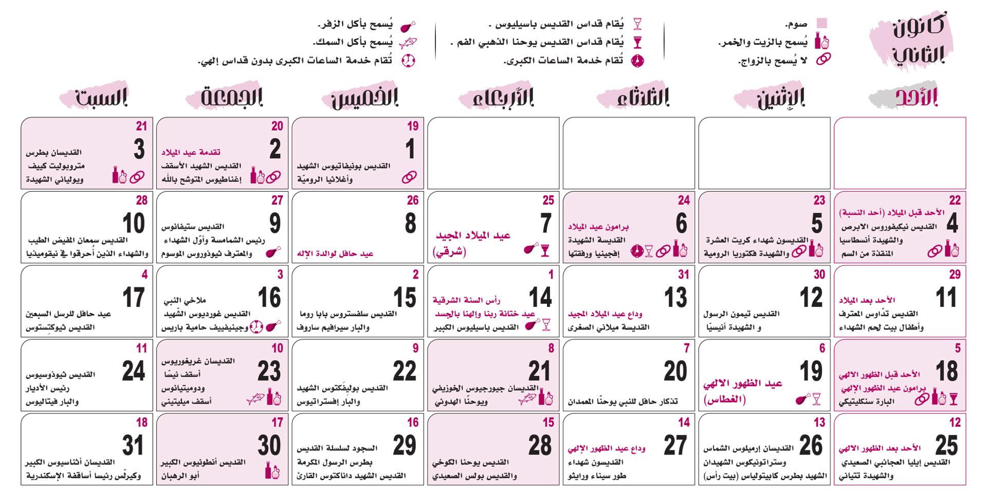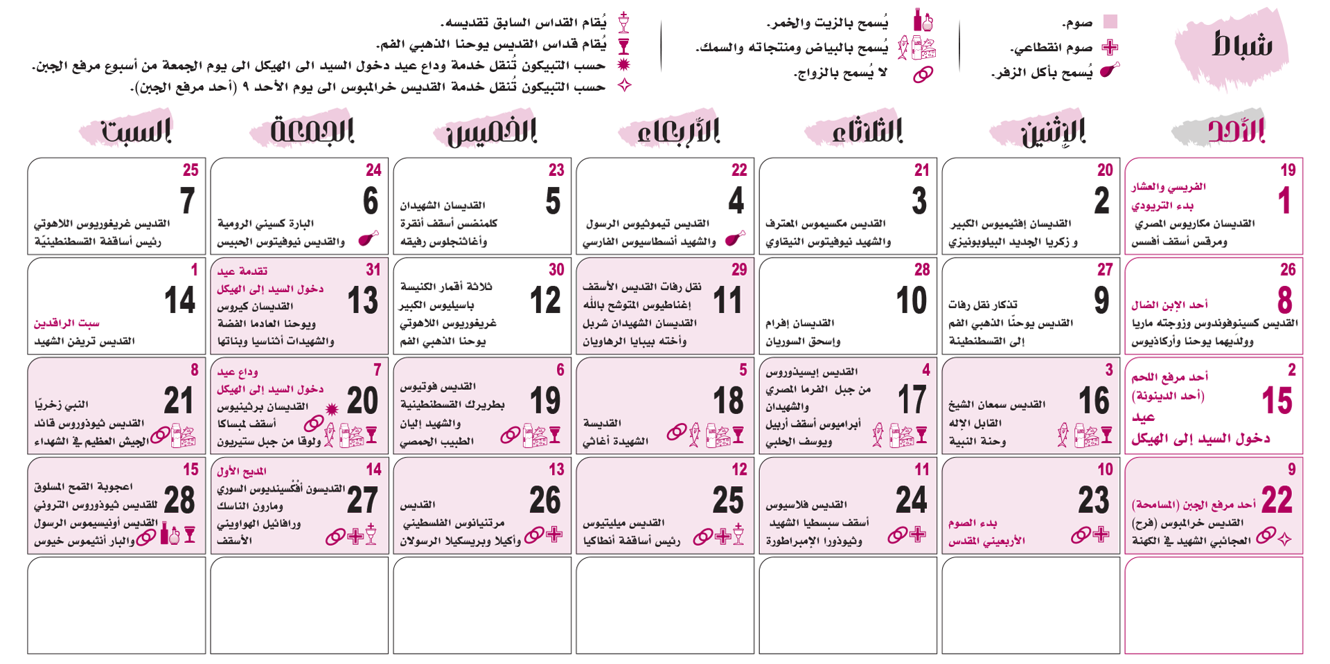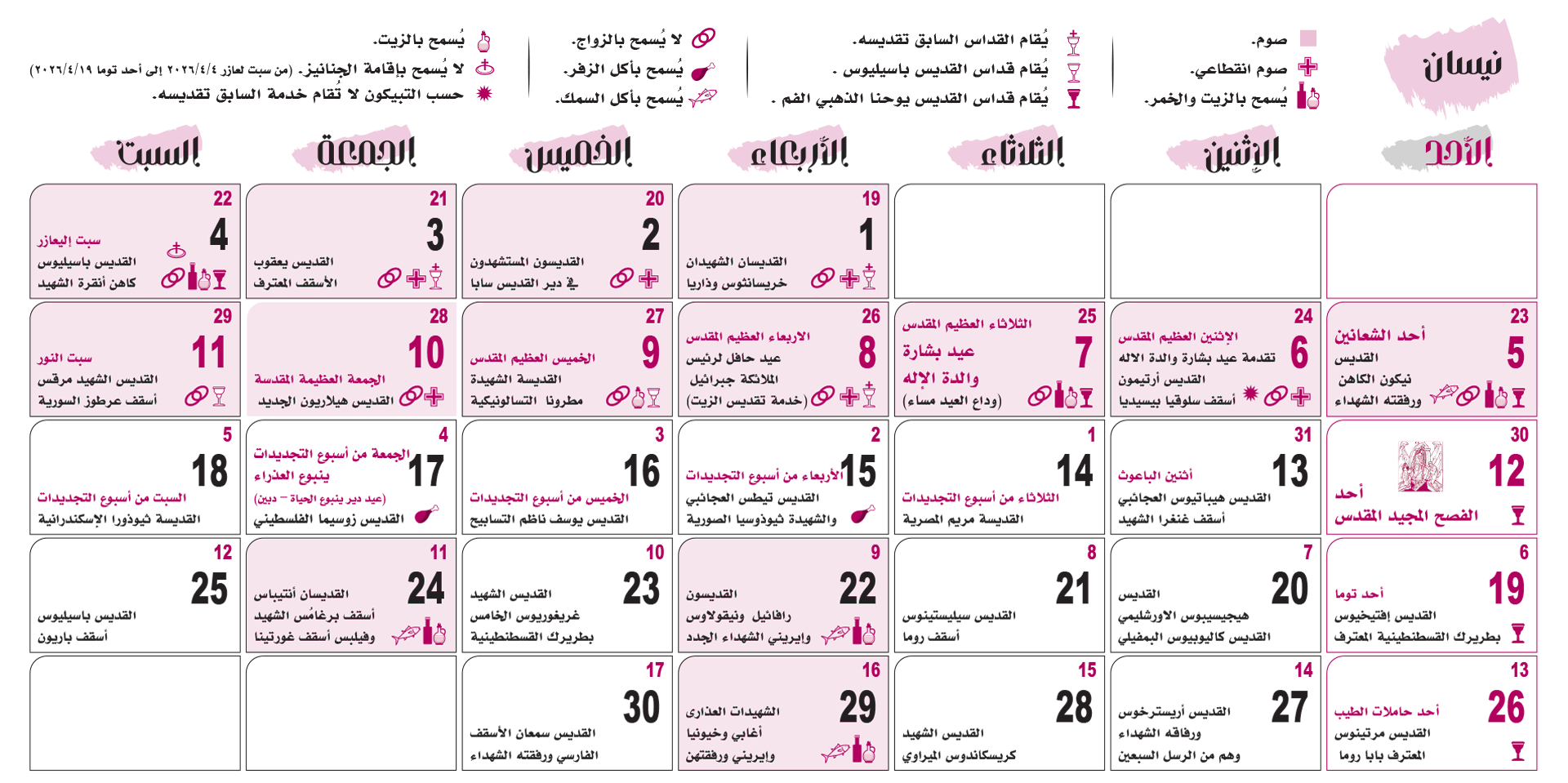 التقويم الكنسّي 2026