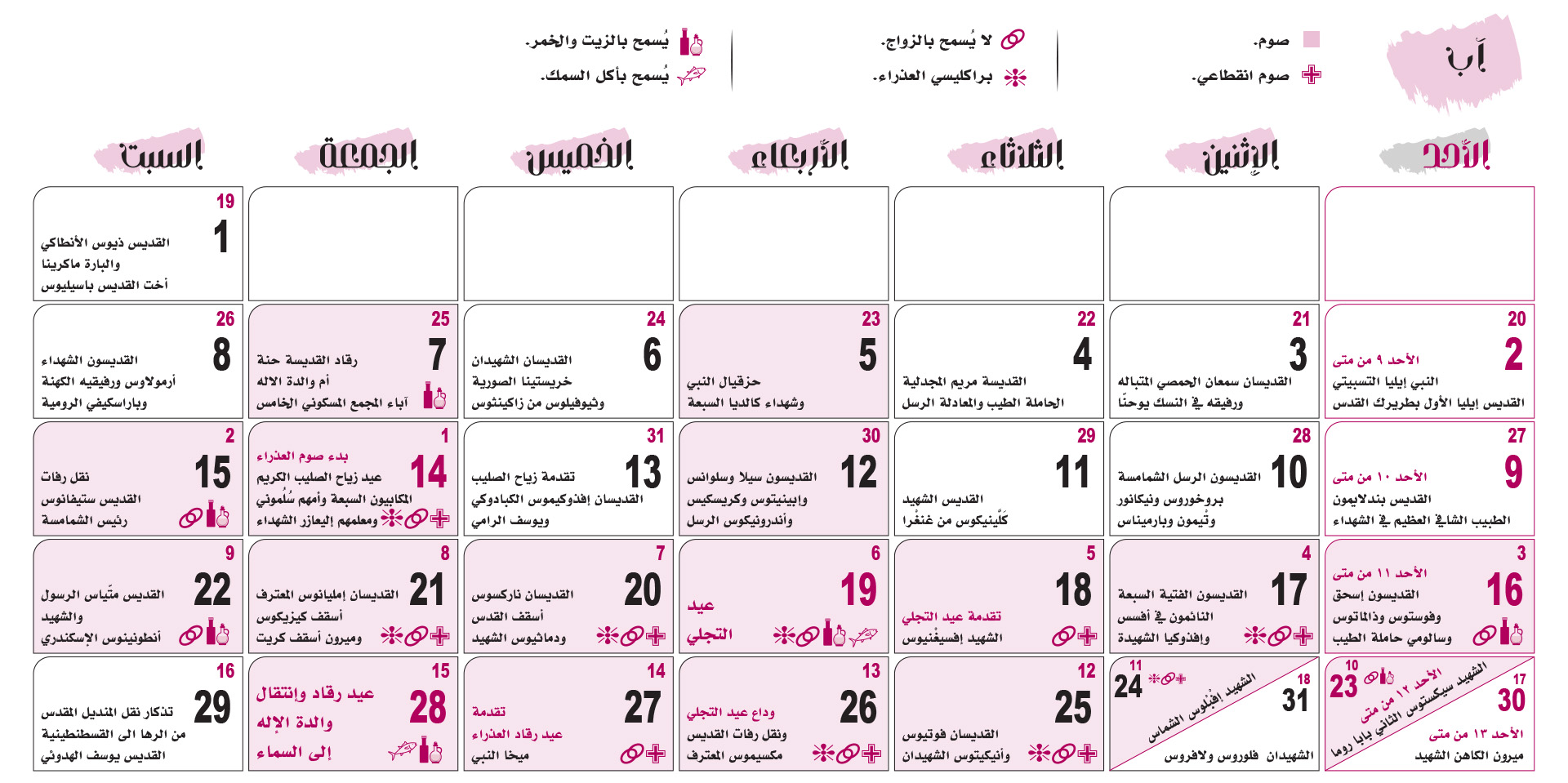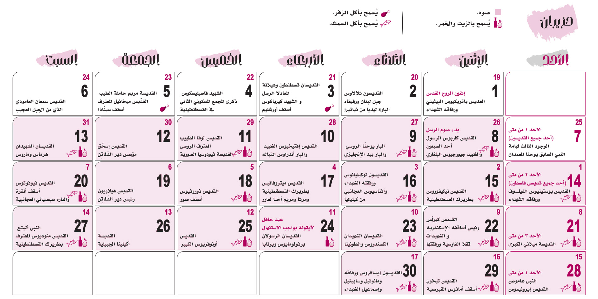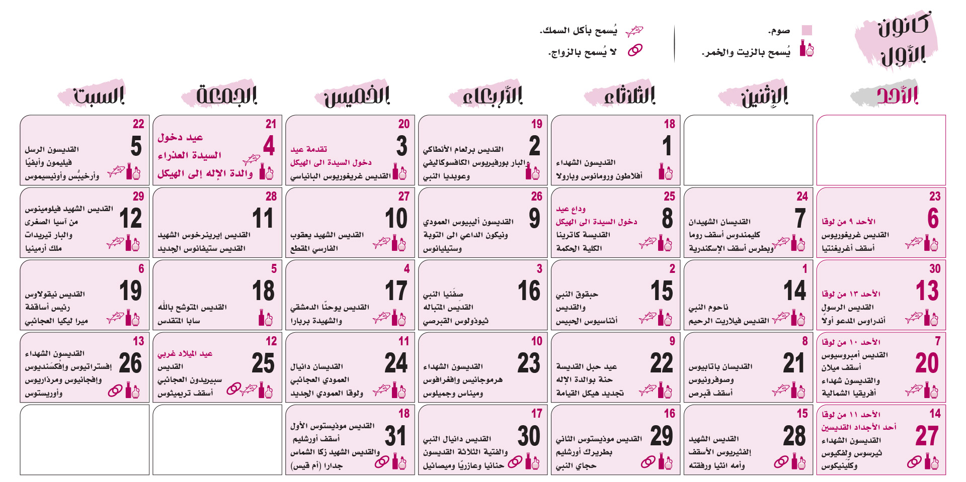 التقويم الكنسّي 2026