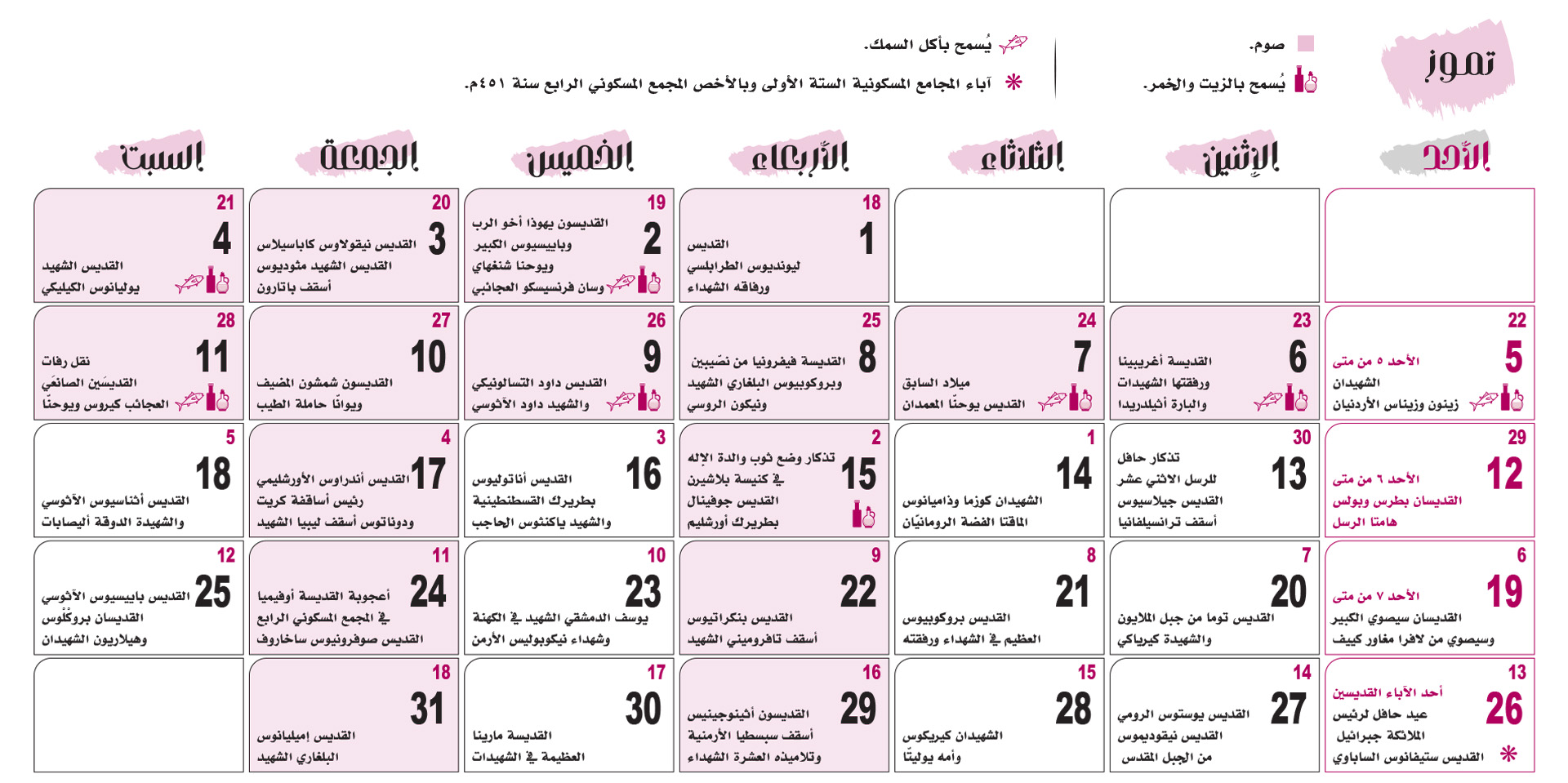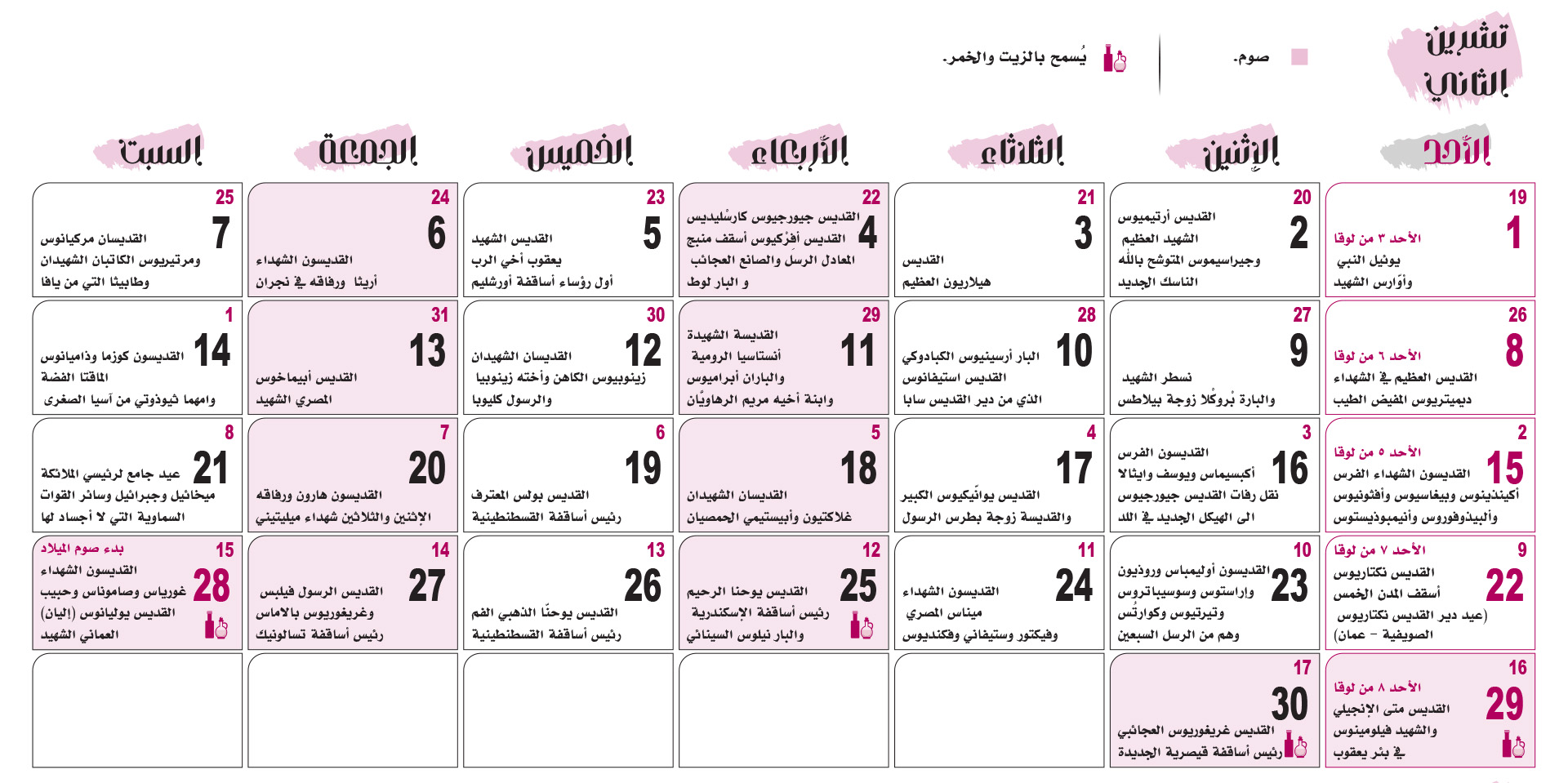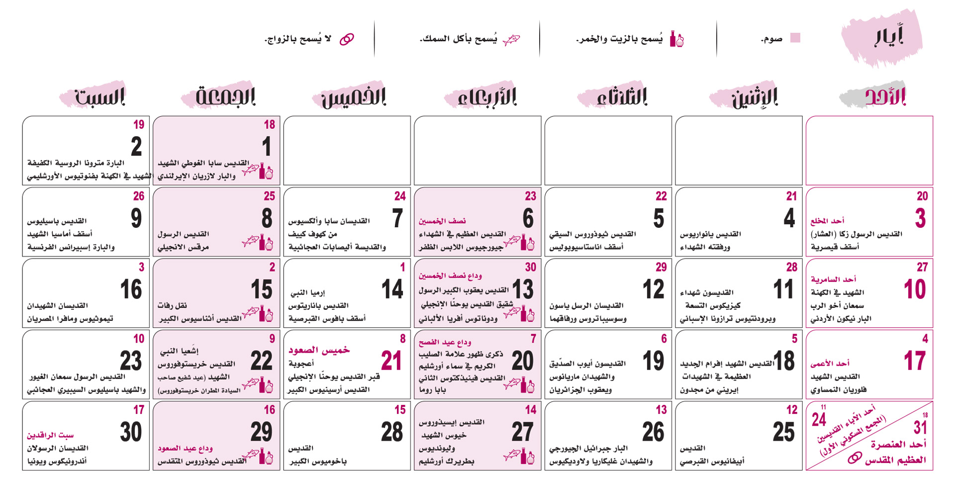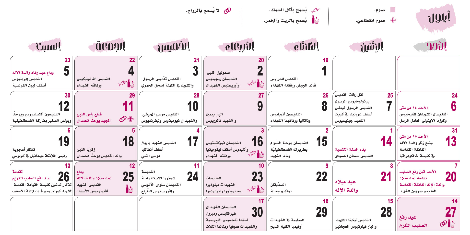 التقويم الكنسّي 2026