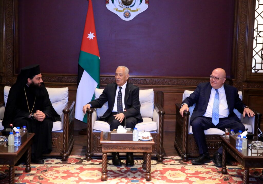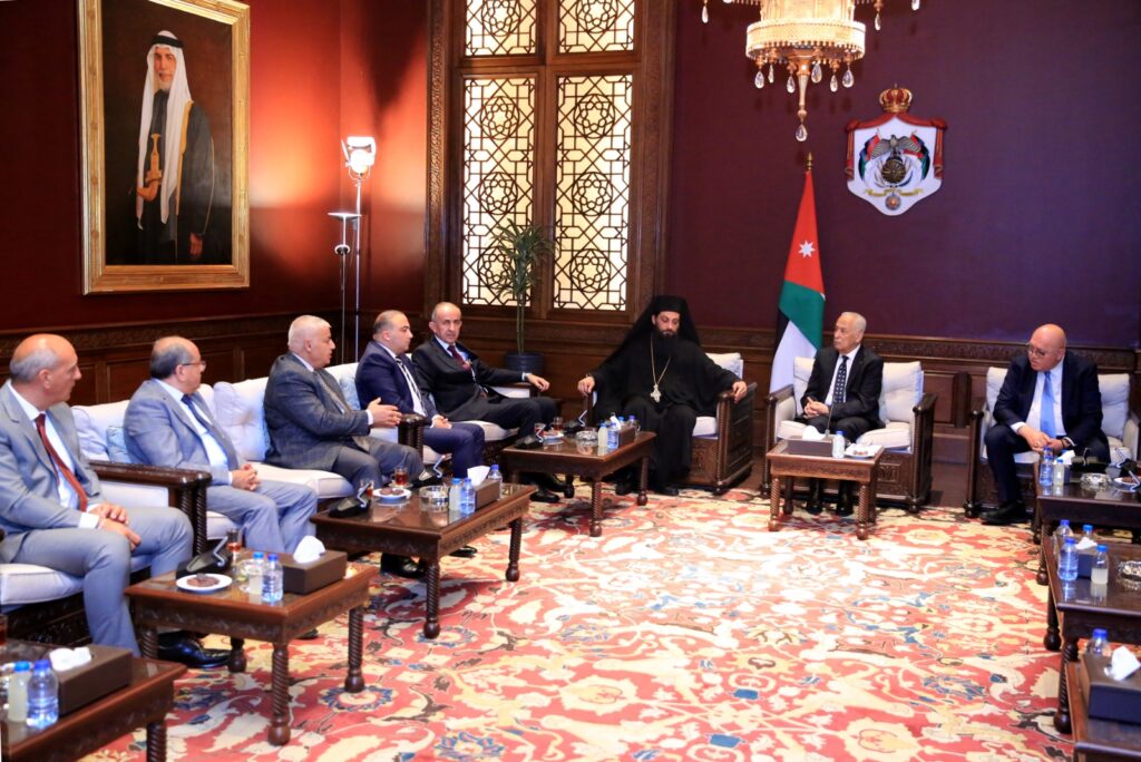 لديوان الملكي العامر يستقبل ابناءه من محافظة الكرك إلتقى الرّئيسُ الرّوحيّ لكنيسة الرّوم الأرثوذكس في محافظة الكرك الأرشمندريت سابا حوراني وبحضور معالي سامي هلسا وأعضاءِ اللّجنةِ الإستشاريّةِ للرّئاسةِ الرّوحيّةِ في محافظة الكرك معالي رئيسَ الدّيوان الملكيّ العامر السّيّد يوسف العيسوي وذلك في بيت الأردنيّين العامر. رحّبَ معالي رئيسُ الدّيوانِ الملكيّ العامر بالوفدِ الضّيف ناقلأ لهم تحيّاتِ جلالةِ الملك عبدالله الثّاني بن الحسين المعظّم الذي يحملُ على عاتقِه رِفعَةَ الأردنّ وأمنهَ واستقرارَه وازدهارَه وذلك من خلال الجهودِ التي يبذلُها على جميع الأصعدة وفي مختلفِ المحافلِ والقضايا الإقليميّة. ثمّ تحدّث الأرشمندريت سابا حوراني على أنّنا في الأردنّ بشكلٍ عامّ ومحافظةِ الكرك بشكلٍ خاصٍّ نعيش إخوةً متحابّينَ تجمعُنا المحبّةُ والإلفةُ والولاءُ والانتماءُ للوطنِ وقيادتِه الهاشميّةِ الحكيمةِ مثمِّنًا مواقفَ جلالة الملك المفدّى أطال الله عمرَه التي يسعى من خلالِها تعزيزَ أمن واستقرارِ الوطنِ وكرامةِ المواطنِ مشيرًا إلى أنّ عددَ الكنائسِ الأرثوذكسيّةِ في محافظةِ الكرك أربعًا إضافةً إلى وجودِ مدرسةٍ للرّومِ الأرثوذكس في منطقة الرّوضه/لواء القصرِ حيث تعملُ جميعُها على إشراك المجتمعِ المحلّيّ في النّشاطاتِ المحليّةِ التي تقام فيها وتسعى من خلال هذه المشاركةِ إلى تعزيزِ أواصِر العلاقةِ بين أفراد المجتمعِ الواحد إضافةً الى عقد بعض الدّوراتِ واللّقاءاتِ والنّشاطاتِ والنّدَواتِ والتي من شأنها إشراكَ وتنميةَ المجتمعِ المحلّي. كما تحدّث أيضًا معالي السّيّد سامي هلسا إلى أنّ الكنيسةَ الأرثوذكسيّةَ في الأردنِّ هي الكنيسةُ الوطنيّةُ للدّولة الأردنيّة وتؤدّي دورَها الرّوحيّ والوطنيّ كشريكٍ أساسٍ في المجتمعِ الأردنيّ مؤكّدًا وقوفَنا ودعمَنا خلف القيادةِ الهاشميّةِ الحكيمةِ والتي تُعتَبر مظلّةً لجميع أبناءِ الوطن الواحد. بدورهم أكّد أعضاءُ اللّجنةِ بأنّنا جميعًا في الأردنّ نسيجَ مجتمعٍ واحدٍ ومكوّنٍ أساسٍ في مجتمعِنا الأردنيّ نقفُ جميعًا خلفَ جلالة الملك عبدالله الثّاني بن الحسين المعظّم داعيمن ومؤيّدين لكلِّ ما يقومُ به جلالتُه في كلِّ المحافلِ الدّوليّةِ والمحليّةِ ولن نسمحَ بالعبثِ بالأمنِ والسِّلم المجتَمَعيّ تعزيزًا للأمنِ واستقرارِ الأردنّ الغالي علينا جميعًا تحت ظلِّ حضرةِ صاحبِ الجلالة الملك عبدالله الثاني بن الحسين المعظّم حفِظَه الله ورعاه.