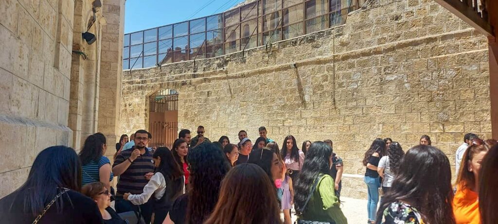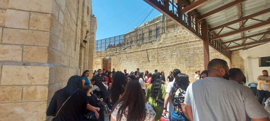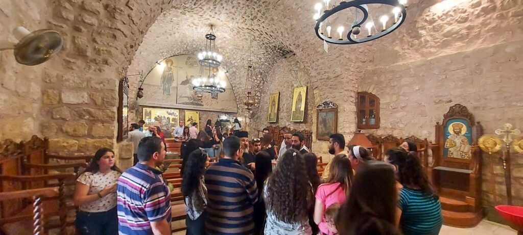 استقبلهم قدسُ الأبِ نكتاريوس حدّاد راعي الكنيسةِ معَ شبيبةِ الكنيسة، وبعدَ ترحيبِ الأبِ نكتاريوس زارَ الجميعُ كنيسةَ القدّيسِ جيورجيوس وكنيسةَ الرُّقاد ، ثمَّ اجتمَعَ الجميعُ حولَ مائدةِ المحبّةِ على أملِ الّلقاءِ قريبًا في برنامجٍ روحيٍّ يجمعُ الشّبيبةَ معًا في القريبِ العاجِل .