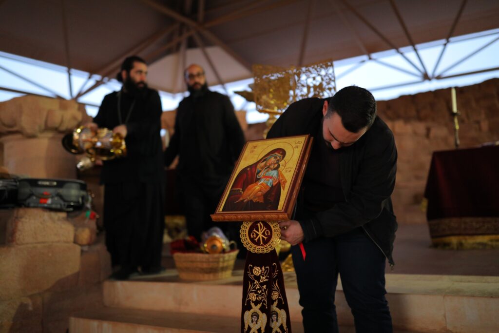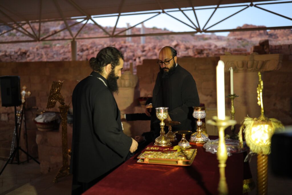 التحضيرات النهائية لخدمة #القداس_الإلهي في موقع كنيسة بترا الرومية الأثرية في مدينة البتراء.