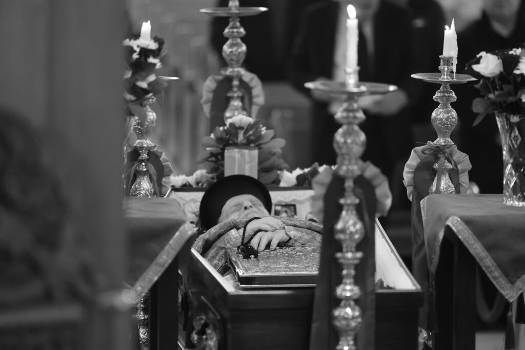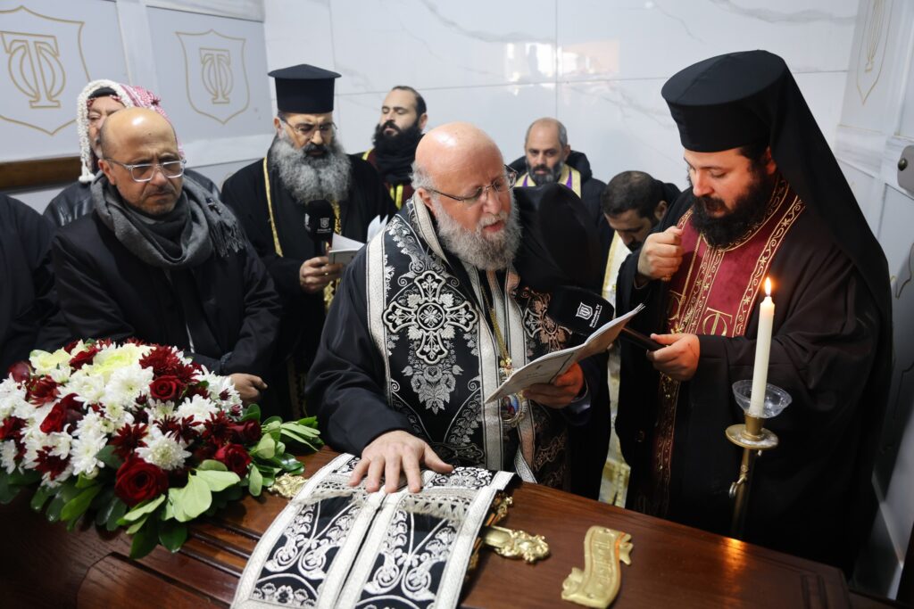 بعد القدّاس، ترأس قدسُ الأرشمندريت روفائيل، بمشاركةِ الآباءِ الكهنة، خدمةَ جنّازِ الكهنة وقراءةِ الأناجيل، تلتها خدمةُ الجنّازِ الرّسمي بحضورِ ذوي الفقيد وأبناءِ الرّعيّةِ ومحبّيه.
