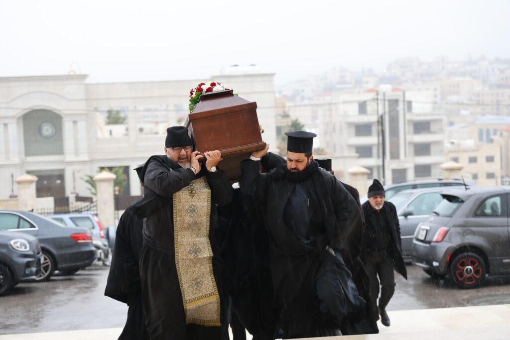وبعد الصّلاة وتقبيل الجثمان الطّاهر، حُمِلَ النّعشُ على أكتاف الآباء الكهنة وسط تأثُّرِ أبناءِ الرّعيّةِ وتصفيقهِم، محبّةً ووفاءً للأب إبراهيم. ثم توجّه الموكبُ إلى مدافنِ الكهنةِ في السّلط، حيث أقيمت مراسمُ الدّفن بحضور سيادةِ رئيسِ أساقفة بيلا، المطران فيلومينوس، ولفيفٍ من الآباء الكهنة.