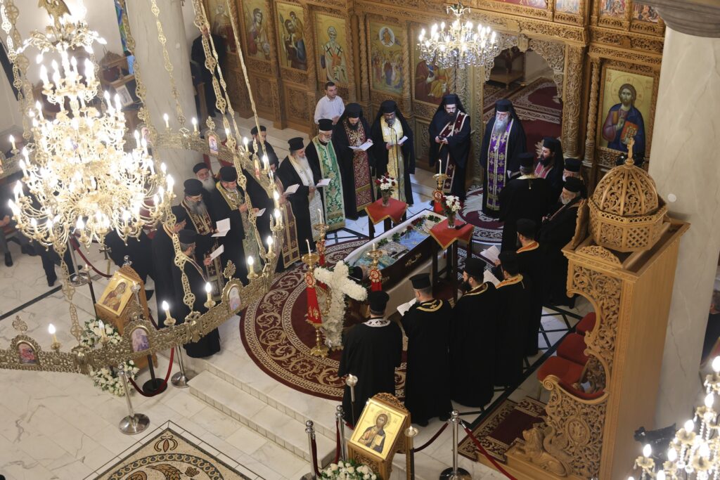 وفي كلمة أبينا صاحبِ الغبطةِ البطريرك كيريوس كيريوس ثيوفيلوس الثّالث، بطريركِ المدينةِ المقدّسة وسائر أعمال فلسطين والأردنّ، التي ألقاها الأرشمندريت أثناسيوس، قال غبطتُه أنّ الكنيسة تودِع اليومَ إلى رحمةِ الله خادمًا أمينًا حفظَ وديعتَها بإخلاصٍ وثبات، وعاش كهنوتَه كتقدمةِ محبّةٍ وبذلَ من أجل رعيّتِه وخلاصِها. وأضاف إنّ الرّجاءَ المنبثقَ من سرّ القيامة يملأ القلوب عزاءً، لأنّ الأبَ إبراهيم قد انتقل من عالمِ التّعبِ إلى راحةِ الأبديّةِ ليقف أمام وجهِ خالقِه مرتّلًا: «المجدُ لله في العُلى». وختمَ بشهادةِ محبةٍ قائلاً إنّ الأبَ إبراهيم كان مثالًا للكاهنِ المتواضِعِ الذي جعل من حياتِه تسبيحًا دائمًا لله، وحملَ محبّة سيّدِهِ في قلبهِ فأثمرت نعمةً في نفوسٍ كثيرةٍ تاقت إلى لقاءِ خالقها.