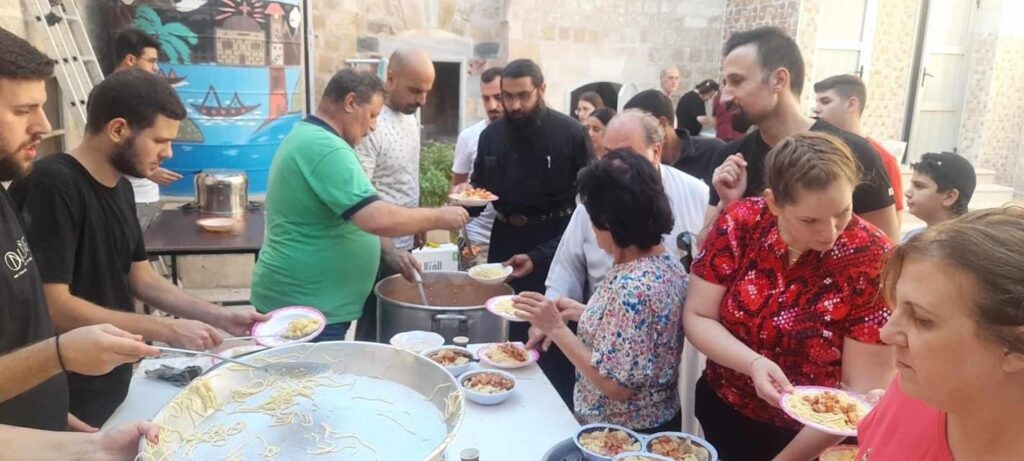 إستقبل مُطران غزة اليكسيوس النازحين من المَسيحيين والمُسلمين في كنيسة القديس بورفيريوس الروم الأرثوذكس. المُطران خريستفوروس في إتصالٍ هاتفي مَع المُطران أليكسيوس إطمئن خلاله على أبناءنا الذين فقدوا مَنازلهم مؤكداً وقوف ودَعم الكنيسة في الأردن لهم، كما أرسل سِيادته مبلغ مالي دَعماً للكنيسة لسّدِ إحتياجات النازحين والمُتضررين. المُطران أليكسيوس حالياً يعملُ ما بوسعهِ من أجل الحفاظ على أرواح النازحين وخدمة المُصابين حيث قال: أنني إذا مِت سوف أحظى بموتٍ كريم حتى لو بقي هُنا شخصٌ واحد من أبناء رَعيتنا على الأقل في غزة، ولن أذهب إلى أي مَكان ولن أترك كنيستي وأبناء رعيتي باذلاً كل الجهود من أجل أن أكون املاً لهم، وسأبقى في غزة محافظاً على الأمانة التي أؤتمنتُ عليها ولن أترك أبنائي في ظل هذهِ الظروف الدّموية المُستحيلة. المُطرانية بدأت فوراً بفتحِ أبواب التّبرع المادي لدعم غزة على الحِساب التّالي: Bank Al Etihad / Al Swafieh Branch Account Name: Greek Orthodox Archdiocese Donations Account No. 0060142327115101 IBAN: JO42UBSI1050000060142327115101 Swift Code: UBSIJOAXXXX او على نظام الدفع الفوري كليك Clik : GOA تُعد كنيسة القديس بورفيريوس في مدينة غزة، واحدة من أقدم كنائس البطريركية وفي العالم، فقد بُنيت بداية القرن الخامس الميلادي على يَد القديس بورفيريوس أسقفِ غزة وتقع في حي الزيتون شرقي المدينة.