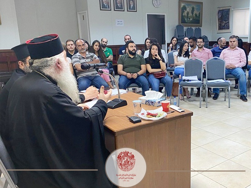 ضمن برنامج خاتمين على صخرة الرب ألقى صاحب السيادة المطران خريستوفوروس مطران الأردن للروم الأرثوذكس، محاضرة توعوية لأبنائنا المحبوبين المقبلين على رباط سر الزواج المقدس ، في قاعة كاتدرائية البشارة بالعبدلي حضر المحاضرة كل من قدس الأب سالم مدانات مسؤول البيت المسيحي والمرشد خليل وهاب والمرشدة الإجتماعية سمر تادرس.