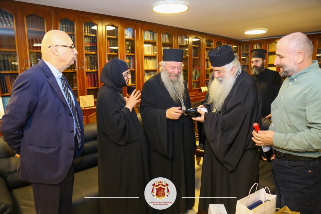 زارَ المتروبوليت ديفيد أسقف مَنطقة آلافيردي في جُورجيا والأم الرئيسة يوانا سِيادة المُطران خريستوفورس في مَكتبه بِحضور سَعادة السّفير الجُورجي في الأردن السّيد زازا والإعلامي فؤاد الكرشة مع أعضاء السفارة الجورجية. خلال اللقاء أثنى المِتروبوليت ديفيد بشكل كبير على جُهد وحِكمة غِبطة البطريرك ثيوفيلوس الثالث ودور المجمع المُقدس بما يختص بأرض المَغطس التي فرزت لأجل إقامة المركز الثقافي الجُورجي. من جانبه أوضح المُطران خريستوفوروس في كَلامهِ للضيوف الدّور التّاريخي المُستمر لكنيسةِ القُدس (بطريركية الرّوم الأرثوذكس المَقدسية) في الأراضي المُقدسة كما والمَكانة التي تَحظى بها الكنيسة الرّومية في المَملكة الأردنية الهاشِمية لدورها الوَطني وحُضورها الرّوحي العَريق، وشدّد على أهميةِ دوام التّواصل والتّعاون بينَ العائِلة الأرثوذكسية مِن خِلال الكنائس الشّقيقة لما يَنعكس على الرّعايا بالإيجاب. يذكر بأن المُطران الضيف هو عُضو في المجمع المُقدس للكنيسة الجُورجية وهو مُدير المَركز الثقافي الروحي التابع لبَطريركية جورجيا.
