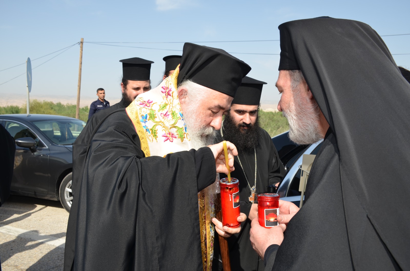 مطرانيّةُ الرّومِ الأرثوذكس / المركزُ الإعلاميّ جسرُ الملك الحسين ، السّبت 15 نيسان 2023 المُطرانُ خريستوفوروس يَستلمُ النّورَ المقدّس من الأرشمندريت برثلماوس مَسؤولِ التّشريفاتِ في البطريركيّة، مِن جسرِ المَلكِ الحُسين لتوزيعِهِ على كنائسِ الأردنّ.