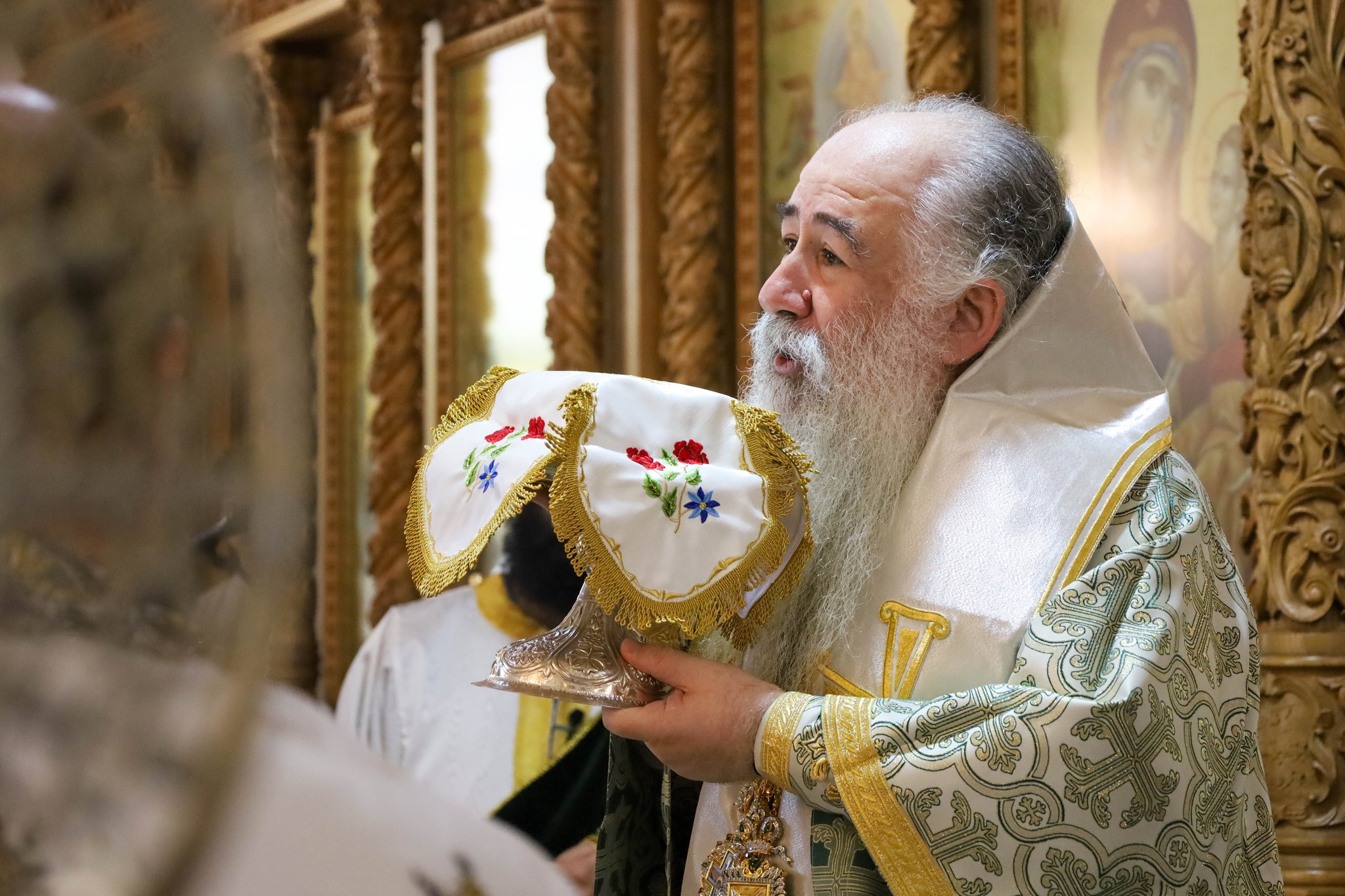 صورٌ من خدمةِ القدّاسِ الإلهيّ ( اللّيتورجيّا الإلهيّة ) الذي ترأسه سيادة المطران خريستوفوروس من كنيسةِ الصّعود الإلهي – خلدا .