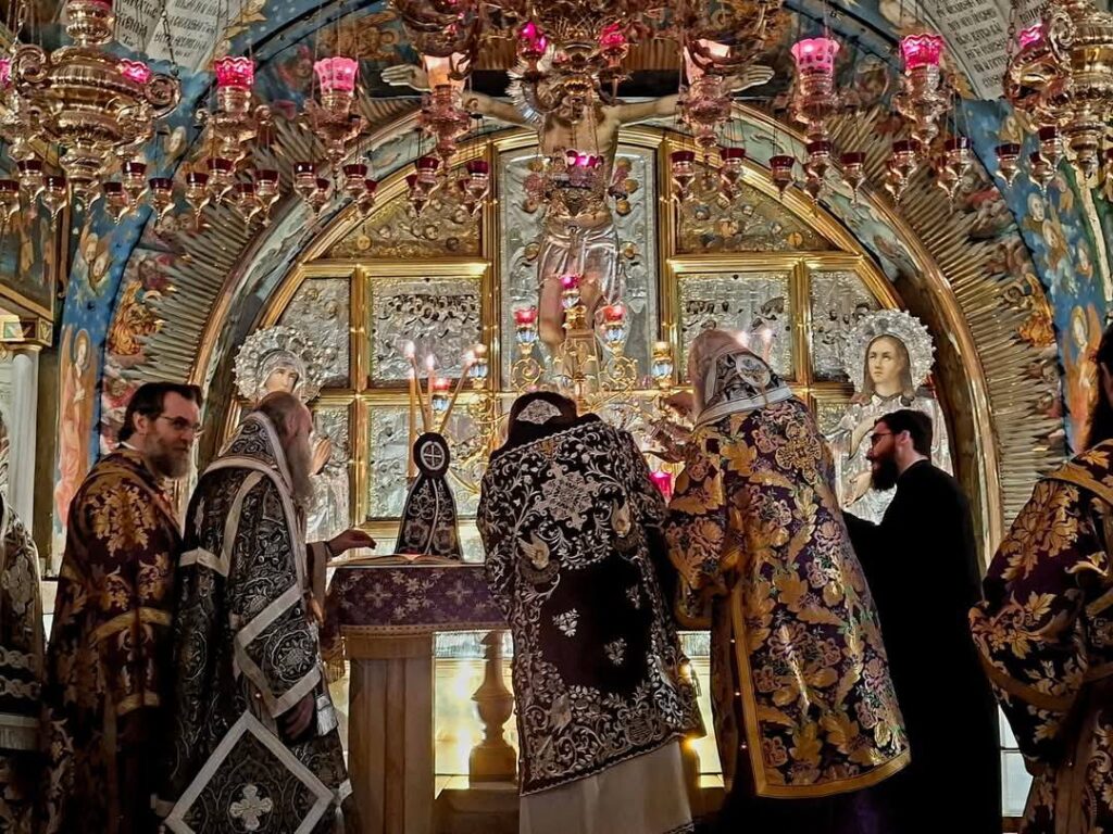 مطرانيَّةُ الرّومِ الأُرثوذكس / المركزُ الإعلاميّ القدس ، الأربعاء 2 نيسان 2025 ترأس صاحبا الغبطة كيريوس كيريوس ثيوفيلوس الثّالث بطريركُ المدينة المقدّسة، وكيريوس كيريوس بورفيريوس بطريركُ الكنيسة الصّربيّة، خدمةَ القدّاس السّابق تقديسه (البروجيازميني) في موضعِ الجلجلة المقدّس في كنيسة القيامة، بمشاركة أساقفةِ وآباءِ أخويّةِ القبر المقدّس والكنيسةِ الصّربيّة.