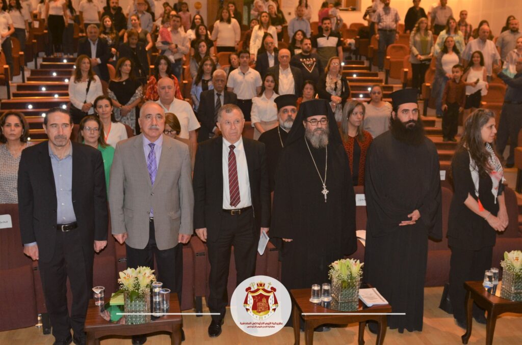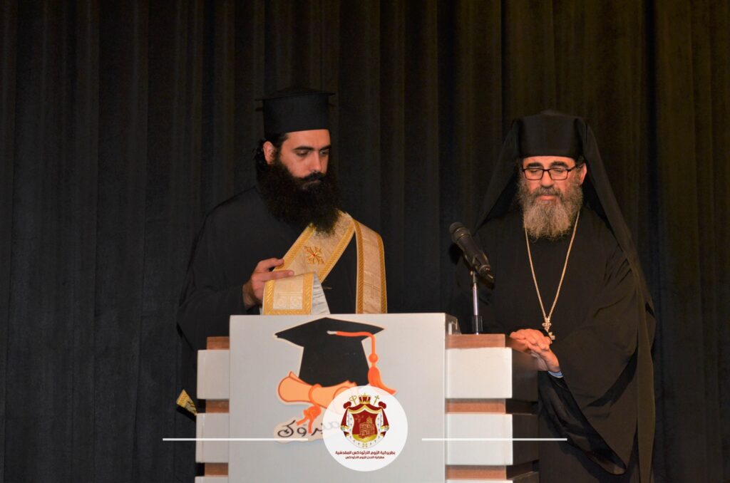 مطرانيَّةُ الرّومِ الأُرثوذكس / المركزُ الإعلاميّ عمّان ، الأثنين 6 تشرين الثّاني 2023 مندوبًا عن سيادةِ المطران خريستوفوروس رعى الأرشمندريت أثناسيوس قاقيش حفلَ تخريجِ الدّفعةِ الثّامنةِ عشرة لدورةِ التّأهيلِ الدّينيّ الذي ترعاه جمعيّةُ الثّقافةِ والتّعليمِ الأرثوذكسيّةِ ونظَّمَتهُ لجنةُ خرّيجي التّأهيلِ الدّينيّ التّابعةُ للُجنةِ مدارسِ الأحدِ والشّبيبةِ الرّوحيّةِ أمسِ السّبتِ على مسرحِ فؤاد يغنم – المدرسة الوطنيّة الأرثوذكسيّة – الشّميساني، بمشاركةِ رئيسِ الهيئةِ الإداريّةِ الدّكتور إحسان حمارنة وعددٍ منَ الكهنةِ الأجلّاء ِوأعضاءِ الهيئةِ الإداريّةِ للجمعيّةِ وأساتذةِ الدّورةِ إلى جانبِ جمعٍ غفيرٍ من أهالي وأصدقاءِ الخرّيجين. تخللَّ الحفلَ فقرَتانِ للتّرتيلِ البيزنطيّ من جوقةِ المدرسةِ الوطنيّةِ الأرثوذكسيّةِ – الأشرفيّة بقيادةِ الخرّيجِ الأستاذ منير حدّاد ومدرسةِ بسالتيريون بقيادةِ الأخِ الرّاهبِ ليونديوس اللّتَين رفعتانا روحيًّا لتَذَوُّقِ الفرحِ السّماويّ مُشارِكينَ الملائكةَ تسبيحًا وتمجيدًا لله.