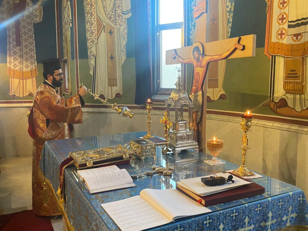 مطرانيّةُ الرّومِ الأرثوذكس / المركزُ الإعلاميّ عمّان ، الأربعاء 22 شباط 2023 صورٌ من خدمَةِ الغروب الإحتفاليّة بمناسبةِ عيدِ القدّيسِ الشّهيدِ في الكهنةِ خرالمبوس من كنيسةِ ميلادِ السّيّدةِ العذراء / جبلِ التّاج حيثُ رفاتُ القدّيسِ . ترأّسَ الخدمةَ الأرشمندريت خريستوفوروس . كما أقيمت صلاةُ الخمسِ خبزاتٍ وزياحٌ برفاتِه المقدّسة التي تبرّك منها المؤمنون في آخِرِ الخدمةِ ووُزِّعت أيقونة القدّيس على المُصَلّين. عاونَهُ في الخدمةِ الإيكونوموس ذيوذوروس والآباء صفرونيوس والياس والشّمّاس إغناطيوس بحضورِ المؤمنين.