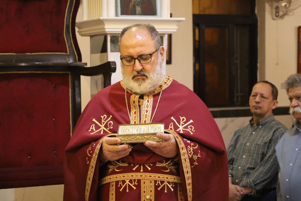 ثم عايد رعيّةَ الكنيسةِ وراعيها الإيكونوموس ديميتريوس سماوي ، بتذكارِ شفيعهِ القدّيس ديميتريوس ، متمنّيًا له دوامَ الصّحّة والعافية لخدمة الرّعيّة والكنيسة ، مقدّمًا له الصّليب المقدّس عربون محبّة وتقدير ، كما قدّمت له جوقةُ الكنيسةِ البطرشيل المقدّس ، ثم احتفل الجميعُ بهذه المناسبةِ المقدّسة بمشاركةِ لفيفٍ من الكهنةِ والشّمامسة بحضورِ أبناءِ الرّعيّة .