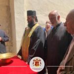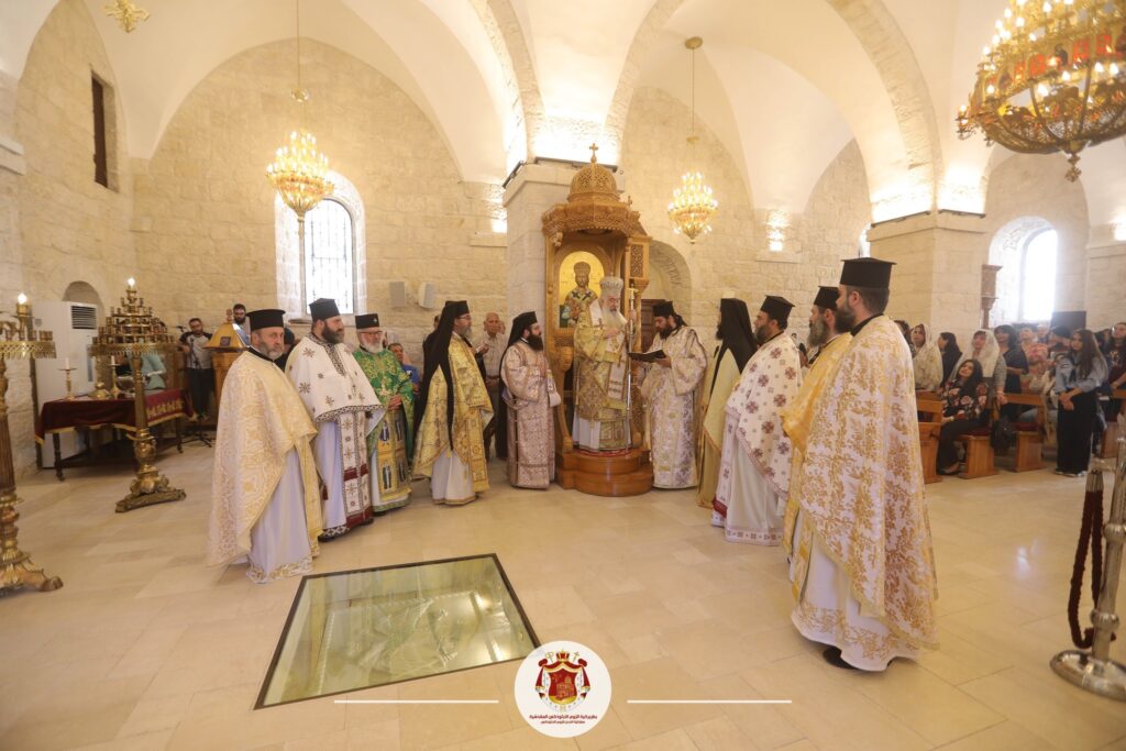 مطرانيّةُ الرّومِ الأرثوذكس / المركزُ الإعلاميّ الحصن ، الجمعة 23 حزيران 2023 صورٌ من خدمَةِ القدّاسِ الإلهيّ ( اللّيتورجيّا الإلهيّة ) صباحَ اليوم والذي ترأسَه سيادةُ المطران خريستوفوروس في كنيسةِ القدّيس جيورجيوس / الحصن بمناسبةِ تكريسِ الكنيسةِ (المبنيّةِ سنة 1886) بعدَ انتهاءِ ترميمِها وتجديدِها ، حيثُ قامَ سيادتُه بتلاوةِ الأفاشين الخاصّة ورشّ الكنيسةِ بالمياهِ المقدَّسة . في نهايةِ الخدمةِ شكرَ سيادتُه، باسمِ صاحبِ الغبطةِ كيريويس كيريوس ثيوفيلوس الثّالث، الأرشمندريت أثناسيوس الرّئيسَ الرّوحيّ لمحافظةِ إربد والإيكونوموس سمعان خوري راعي الكنيسةِ ولجنَةَ الكنيسةِ على الجهودِ التي بذلوها في سبيلِ ترميمِ الكنيسةِ ومنهم المهندس مجد والسّيّد جريس (أبو نظير) واللذَين قدّمَ لهما سيادتُه دِرعَي شكر . ثمّ شكرَهُ قدسُ الأرشمندريت أثناسيوس وشكرَ كلَّ مَن قدّمَ الدّعمَ لتجديدِ حلّةِ الكنيسة وقال أنّ الأعمالَ لم تنتهِ بعدْ، فالمرحلةُ التّاليةُ ستكونُ رسمَ الكنيسةِ بإذنِ الرّبّ. عاونَهُ في الخدمةِ لفيفٌ منَ الآباءِ والشّمامسةِ بحضورِ المؤمنين