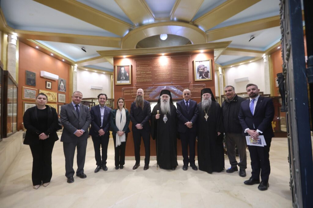 رافقهُ كل من وزير السياحة والاثار د. عماد حجازين ومدير عام هيئة تنشيط السياحة رمزي المعايطة والسفيرة اليُونانية والسفير الأمريكي.