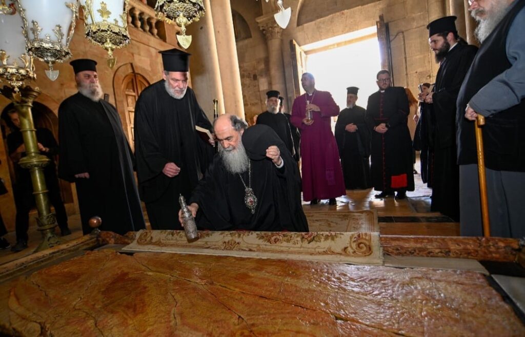 ثيوفيلوس الثالث… الزيت المُقدس… شارلز الثالث مِن الأحداث التاريخية والنادرة هي نقلُ الزَيت المُقدس إلى المَملكة المُتحدة ليُمسح بهِ ملكُ بريطانيا العُظمى المُنصّب. حيثُ أقامَ بطريرك المَدينة المُقدسة ثيوفيلوس الثالث صَلاة الزّيت في كنيسةِ القديسة تقلا داخل دير الرّوم الأرثوذكس في #القدس خِصيصاً للمَلك الجَديد شارلز الثالث وبعدها توجه غبطة البطريرك إلى كنيسةِ القِيامة قاصداً قبر الخلاص واضعاً الزيت المُقدس هُناك للصلاة ثمّ سلّم الزّيت لمُطران الكنيسة الانجليكانية في القُدس (حُسام نعوم) ومنهُ إلى القُنصل البريطاني العام السّيدة ديان كورنر تمهيدًا للتنصيب الملكي في شهر أيار القادم.