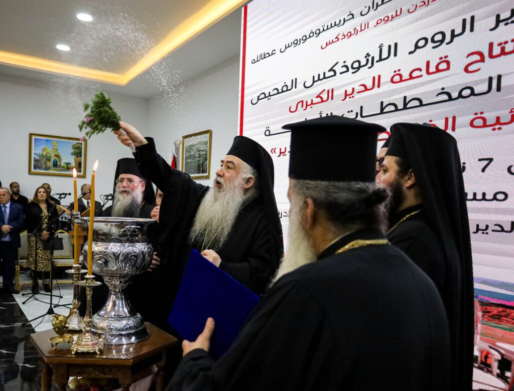 مطرانيّةُ الرّومِ الأرثوذكس / المركزُ الإعلاميّ الفحيص، 7 نيسان 2025 رعى صاحبُ السّيادة المطران خريستوفوروس مطرانُ الأردنِّ للرّوم الأرثوذكس أمس الإثنين افتتاحَ قاعةِ دَير الرّوم الأرثوذكس الجَديدة بعدَ ترميمها بالكامل بِتَبَرَّعٍ مُبَارَك مِن المُحْسنِ الكَبِيرِ السيّد سميحِ عَايِدِ صُوَيص عَن رُوحِ وَالدهِ الطَّيِّبِ الذِّكرِ المُرَحرَمِ عايد عيد مسْعَاف صُوَيْص مُختَار عشيرَةِ الصُّوَيْصَاتِ والذي يدعم بمحبَّةٍ كبيرةٍ وعطاءٍ متفانٍ مشاريعَ الدّير والمدينةِ ببنوّتِهِ البارّة، والتي باتت جاهزةً لإستقبالِ مختلفِ الأنشطةِ والمناسباتِ التي تخدمُ رعيّةَ الفحيص. وأُعلن رَسميًا خلال الإحتفاليّةِ عَن مشروعِ الكنيسةِ الأُرثوذكسيَّة في مَدينة الفحيص المحروسةِ بالله، وهُو عِبارةٌ عَن كاتدرائيّةٍ مميَّزةٍ بالفنِّ المعماري الرّوميّ ومُجمّعٌ كَنسيّ يَضُمّ مَباني خدمِيّة جاء أبرزها (دَارٌ للعَائلةِ يَجمعُ كِبارَ السّنِّ وأطفالًا مِن ضحايا التّفكّك الأُسري، من بنات وأبناء الكنيسة والمُجتمعِ المَسيحي المُحتاجينَ لرعايةٍ واهتمامٍ طبيعيٍّ كسائرِ الأسر، ووجود مبنىً للسّيّدات المعنَّفات والمُكرَّساتِ لخدمة الكنيسةِ ببعدٍ روحيٍّ ورعائيٍّ مميَّز) سيُنفّذُ المَشروعُ في منطقة خربة الدّير، على قطعة أرض بمساحةِ 9 دونماتٍ، حيثُ عُرضَت المُخطَّطاتُ الأوليّةُ للمَشروع مِن قبلِ مَجموعةِ مُهندسينَ مُتطوّعينَ مِن أبناء وبنات الشّبيبةِ عملوا لما يُقارب العام ونصف مُترجمينَ حُلمًا قديمًا جديدًا لرعيّة الفحيص ببناءِ مَشروعٍ بهذا الحَجم، بحسبِ الأرشمندريت خريستوفوروس حداد الرّئيسِ الرّوحيّ للبلقاء الذي قدّمَ جزيلَ الشّكر لمجموعةِ المُهندسينَ ولجانِ الكنائس للتّفاني في العَمل والالتزام التّامِّ لإكمالِ العديدِ من دراساتِ المُخطَّطات التي أفضت لمُخطَّطٍ أوليٍّ نهائي حَوى شروحاتٍ مُفصّلةً ومُتخصّصةً عن أدقِّ تفاصيل المَشروع، خاصّة مبنى الكاتدرائيّةِ المُستوحى هندسيًا مِن كنيسةِ القيامة في القدس وكاتدرائيّة القدّيس سابا في صربيا. كما عُرِضت جميعُ أعمالِ البناءِ الجَديد والتّرميماتِ التي طالتِ الكنائسَ والمَزاراتِ والمَرافقَ التّابعة لبطريركيّة الرّوم الأرثوذكس التي أشرف عَليها الأرشمندريت خريستوفورس ونفّذها مَع المُخلصينَ والمتبرّعينَ مِن أهلِ الرّعيّة وعُمومِ لجانِ وهَيئاتِ الرّعيّة المُختلفة. مِن جهتهِ أوضحَ صَاحِبُ السّيادة المُطران خريستوفوروس، فلسفةَ المَشروعِ الكَبير والتّاريخيّ المَنوي تنفيذُه في منطقة خربة الدّير، بما يَخدمُ المُجتمعَ المَسيحيَّ عُمومًا ويُساعد الدّولةَ ويحملُ مَعها جزءًا من المسؤوليّة الإجتماعيّةِ في إشارةٍ لدورِ دارِ العائِلة. حُضورٌ مُتنوّعٌ جمعَ أمس جَميع أهالي الفحيص ووجهاءَ ونُوّابًا وشخصيّاتٍ إجتماعيّة وعَامّة، وقامَ سيادة المطران خريستوفورس بتكريس القاعةِ بالماء المُقدّس، وقدّمت مَجموعةٌ مِن المُرتّلينَ الشّبابِ تراتيلَ كنسيّة بيزنطيّة بهذه المناسبة.