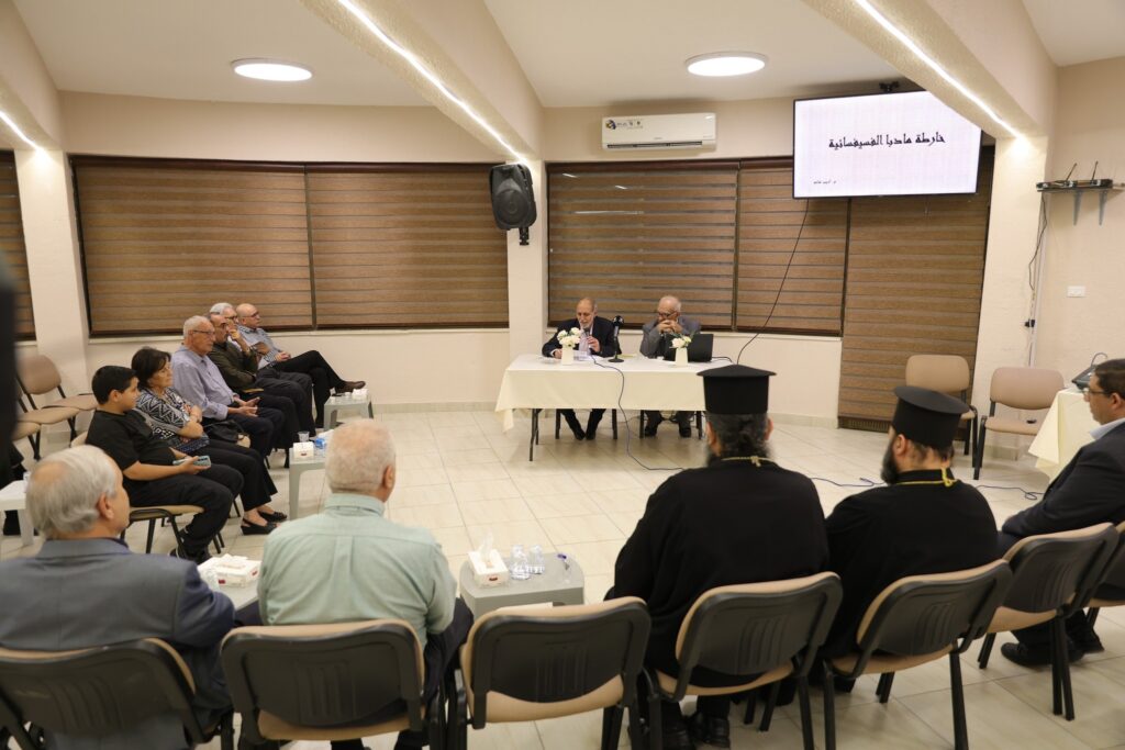 مندوبًا عن صاحب السّيادة المطران خريستوفوروس الجزيلِ الاحترام شارك قدسُ الإيكونوموس جيراسيموس طاشمان وبحضور قدس الإيكونوموس ذيوذوروس حدّاد أمسِ الخميس في النّدوة التي أقيمت في جمعيّة بيت ساحور التّعاونيّة. حيث قدم خلالَها المهندس أديب غانم دراسةً علميّةً تحليليّةً مفصّلةً ودقيقةً من كتابِه “خارطةُ مأدبا الفسيفسائيّة ” والموجودة في كنيسةِ القدّيس جيورجيوس مع عرضٍ مرئيّ عن الأهمّيّةِ التّاريخيّةِ والدّينيّةِ للخارطة مبيِّنًا شمولَها على ما يقارب 147 موقعًا مسيحيًّا أثريًّا موجودًا في فلسطين والأردنّ وبلاد الشّام موضحةً علاقتَها بحياة السّيّدِ المسيح ومسيرةَ التّدبيرِ الخلاصي والايمان المسيحي بشكل عامّ.