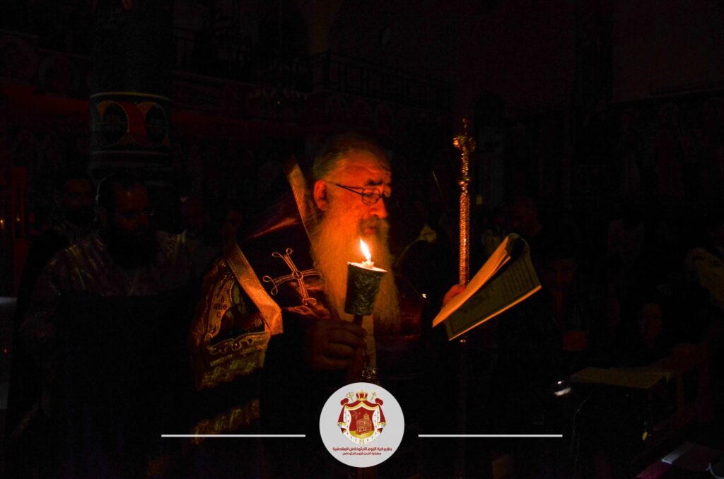 مطرانيّةُ الرّومِ الأرثوذكس / المركزُ الإعلاميّ مأدبا ، الخميس 13 نيسان 2023 صورٌ من خدمةِ أناجيلِ الآلامِ عشيّةَ الخميسِ العظيمِ المقدّسِ التي ترأسَها سيادةُ المطران خريستوفوروس من كنيسةِ رقادِ السّيّدةِ العذراء / حنينا ، الذي عايدَ الرّعيّةَ متمنِّيًا أن يمنَحَنا الصّليبُ المقدّس القوّةَ لإتمامِ أسبوعِ الآلامِ لنكونَ شهودًا للقيامةِ المجيدة ، مستمدّينَ المحبّةَ الحقيقيّةَ من محبّةِ المسيحِ لنا عبرَ الصّليب ، مع ضرورةِ التّفاعُلِ معها لنكونَ نورًا للعالمِ ومِلحًا للأرض . عاونَهُ في الخدمةِ الأرشمندريت إيرونيموس الوكيل البطريركي في مأدبا والأبَوَين يوسف وإشَعيا راعيا الكنيسةِ ورئيسُ الشّمامسةِ سلفستروس والشّمّاس إغناطيوس والرّاهبان ليونديوس وخريسانثوس بحضورِ المؤمنين.