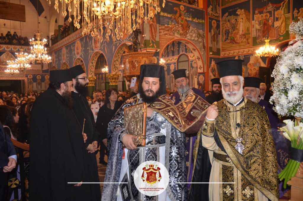 مطرانيّةُ الرّومِ الأرثوذكس / المركزُ الإعلاميّ عمّان ، الجمعة 14 نيسان 2023 صورٌ من خدمةِ سَحَريَّةِ السّبتِ العظيمِ المقدّس ( جنّاز المسيح ) مساءَ يومِ الجمعةِ العظيمِ المقدّس التي ترأسَها الأرشمندريت خريستوفوروس من كاتدرائيّةِ دخولِ السّيّدِ الى الهيكل / الصّويفيّة ، الذي تحدّثَ في عظةِ الإنجيلِ أنّ الرّبَّ يسوع المسيح أصبحَ إنسانًا من أجلِنا ، ليجعَلَنا أبناءَ وآلهةً بالنِّعمة ، على شبهِه ومثالِه ، فدعوَتُنا اليومَ أن نتحرّرَ من العبوديّةِ لنكون أبناء حقيقيّينَ للمسيح ، من خلالِ محبّتِهِ لنا على الصّليب ، مستعدّينَ لنكونَ معَ مسيحِنا وإلهِنا في فردوسِ النّعيمِ والحياةِ الأبديّة . عاونَهُ في الخدمةِ الآباء إبراهيم وفرح وألِكساندروس رعاةُ الكنيسةِ بحضورِ المؤمنين.