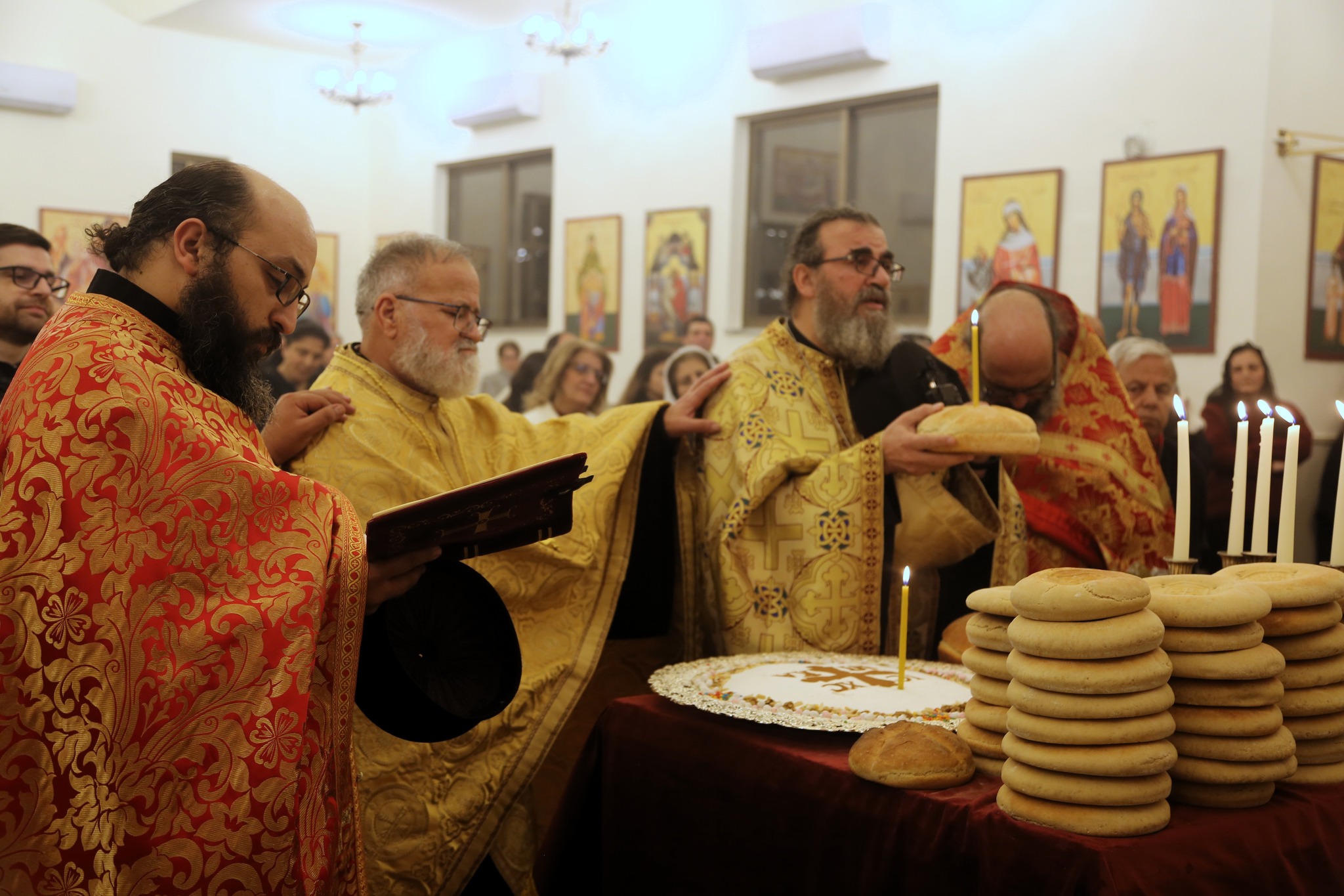 صورٌ من خدمةِ غروبِ تذكارِ القدّيس نيقولاوس وصلاةِ الخمسِ خبزاتٍ التي ترأسها قدسُ الأرشمندريت أثناسيوس بمشاركةِ قدس الإيكونوموسان عبدالله وإسحق والأب صفرونيوس بحضورِ أبناءِ الرّعيّة.