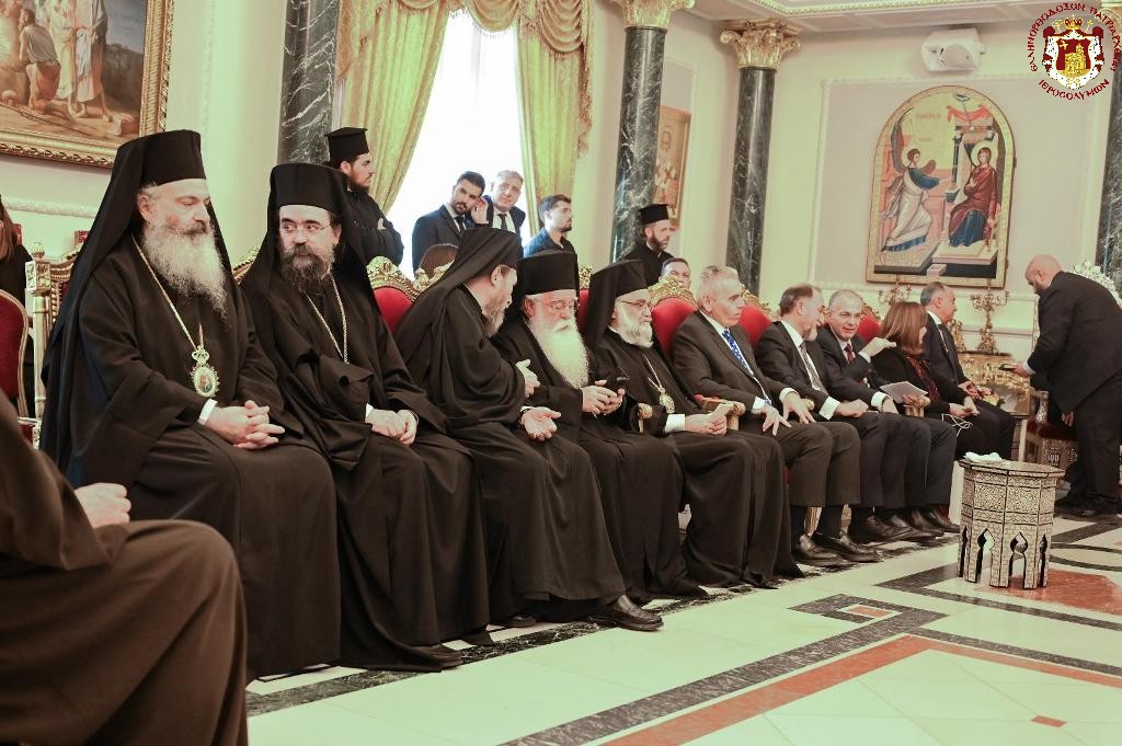 كما ألقى معالي وزير الخارجية اليوناني السيد جورج جيرابيتريتيس كلمةً عبّر فيها عن تقدير الحكومة اليونانية العميق واحترامها للبطريركية الأورشليمية، مشدداً على رسالتها الروحية والوطنية والثقافية الغنية، ومعبّراً عن سروره العميق لمشاركته في هذه اللحظات المقدسة التي تشهد على مجد الرهبنة الأرثوذكسية في سيناء.