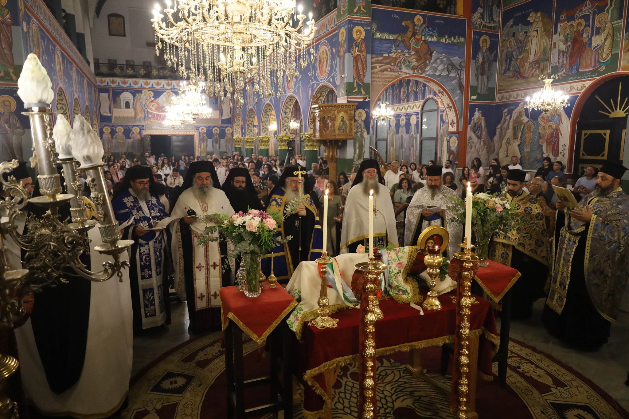 بموكبٍ مهيبٍ تقدّمَ لفيفٌ من الكهنةِ لتطوافِ أيقونةِ الكُلّيَةِ القداسةِ محمولةً على أكفٍّ كهنوتيّةٍ مقدّسةٍ ، من ديرِ القدّيسِ نكتاريوس إلى كاتدرائيّةِ دخولِ السّيّدِ إلى الهيكل ، حيثُ ترأّسَ سيادةُ المطران خريستوفوروس خدمَةَ الابتهالِ لوالدةِ الإلهِ ( البراكليسي ) وتقاريظَ رقادِها ، بمعاونةِ الكهنةِ والشّمامسةِ بحضورِ أبناءِ الرّعيّة ، حيث تناوبَ الجوقانِ على ترتيل تقاريظِ جنّازِ رقادِ والدةِ الإلهِ الكلّيّةِ القداسة بكلِّ خشوع .