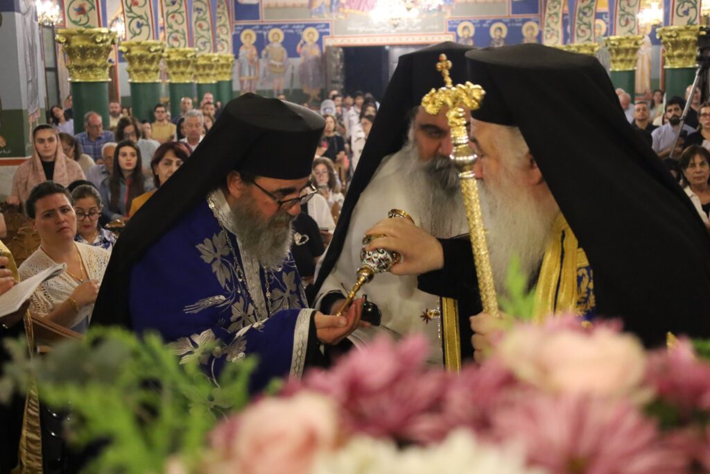 وبعد الخدمةِ عايدَ سيادتُه جموعَ المؤمنينَ موضِحًا كيفَ تُنقَلُ اليومَ أيقونةُ والدةِ الإلهِ وبحسبِ التّقليدِ الكنسي من كنيسةِ القيامةِ إلى الجثسمانيّة لحين عودتِها في الخامس من تمّوزَ القادمِ ، ثم طلبَ من المؤمنينَ الإنصاتَ اليومَ الى والدةِ الإله لتحدِّثَكُم وتعزّي قلوبَكُم وترشدَكُم نحو الخلاص .