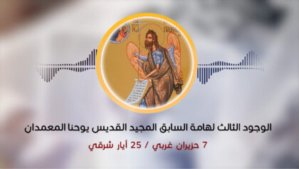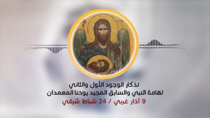 شفعاء الأردن 6:270% 13 كانون الثاني القديس الشهيد في الكهنة بطرس كابيتولياس سنتين ago 6:090% 24 شباط تذكار الوجود الأول والثاني ليوحنا المعمدان سنتين ago 4:130% 25 أيار الوجود الثالث لهامة السابق المجيد القديس يوحنا المعمدان سنة واحدة ago 1:230% 10 حزيران القديس أستاريوس أسقف البتراء سنة واحدة ago 6:240% تموز 20 شرقي القديس المجيد النبي اليليا الغيور سنة واحدة ago 9:480% آب 29 شرقي قطع رأس النبّي الكريم السابق المجيد يوحنا المعمدان سنة واحدة ago 3:310% 17 تشرين الأول القديسان الصانعا العجائب العادما الفضة كوزما و داميانوس 12 شهر ago 7:070% 26 تشرين الثاني القديس الشهيد اليان العماني 11 شهر ago