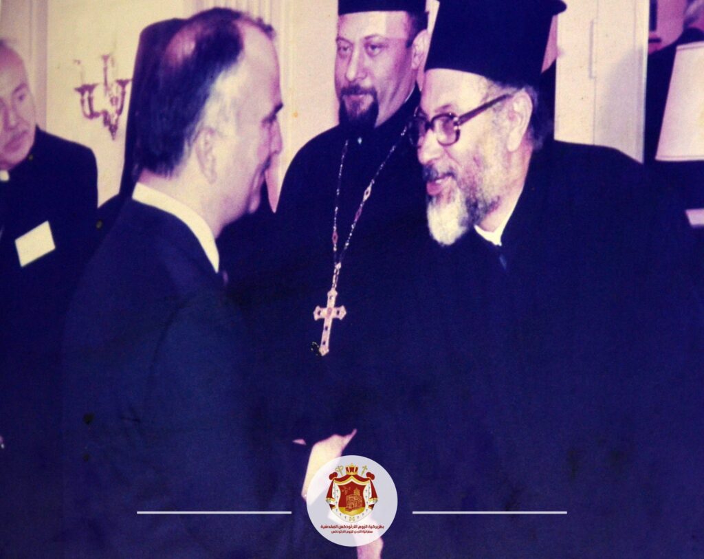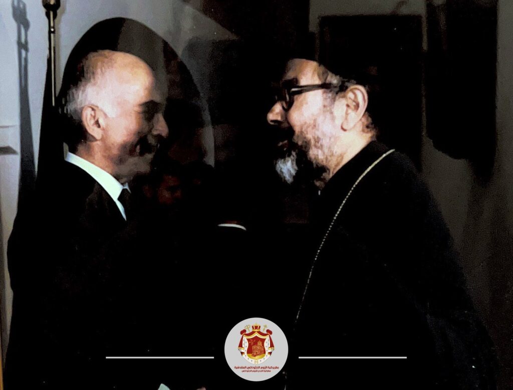 المَغبوطُ الذِّكرِ الأرشمندريت قُسطنطين قرمش أحدُ أبرزِ الشّخصيّاتِ الوَطنيّةِ والكنَسّيةِ الذي ذاعَ صيتهُ خادمًا للكنيسةِ والمُجتمعِ مُنذُ مُنتصفِ القرنِ المَاضي نائبُ رَئيسِ المَجلسِ الوطنيّ الفِلسطينيّ السّابق الشّيخُ والمُتقدِّمُ في الكهنةِ راعي كاتدرائيَّةَ بشارة السَيّدةِ للرّومِ الأرثوذكس – مُطرانيّة الأردنّ توَلُّد مَدينةِ بيت جالا – فلسطين عام 1927 سِيمَ شمّاسًا وكاهنًا عام 1957 في كنيسةِ تجلّي المُخلِّص – عمّان، وسط البلد وحصل على رتبة ايكونوموس بيدِ المثلّثِ الرّحماتِ المُطران أريستوڤولوس، الوكيلِ البطريركيِّ في الأردنّ آنذاك. رُقّيَّ لرُتبةِ أرشمندريت عام 2019 ببركة غبطة البطريرك ثيوفيلوس الثالث وبيَدِ سّيادةِ المطران خريستوفوروس في كنيسةِ القدّيسَين قسطنطين وهيلانة – عمّان عاصرَ خِلالَ خدمتهِ الكهنوتيَّةِ أربعةَ بطاركةِ للقُدس: فينيذكتوس وذيوذوروس وإيرينيوس وثيوفيلوس مثَّلَ مقعدَ العاصمةِ عمّان في انتخاباتِ البطاركةِ ذيوذوروس وإيرينيوس وثيوفيلوس في مدينةِ القُدس عُضوُ الّلجنةِ المَلَكيّةِ لشؤونِ القُدس – الأردنّ عُضوُ المَجلسِ المَركزيّ الفِلسطيني – مُنظّمةُ التّحريرِ الفِلسطينيّة أحدُ مُؤسِّسي جَمعيّةِ الثّقافةِ والتّعليمِ الأرثوذكسيّة أحدُ مُؤسِّسي مَشروع مَركزِ الأملِ لعِلاجِ السّرطان شاركَ رسميًّا في العديدِ مِن المُؤتمراتِ المَحلّيّةِ والإقليميّةِ والعَالميّة أشرفَ على بِناءِ العَديدِ مِن الكنائسِ والمَشاريعِ والمَرافِقِ الكنَسيّةِ في الأردنّ في رَصيدِهِ عَددٌ كبيرٌ من الكُتبِ والمُؤلَّفاتِ اللاهوتيّةِ والكنَسيّة مكتَبَتُهُ ضمَّت أكثرَ من ثلاثةِ آلافِ عنوان الأبُ الذي حملَ أوسِمَةَ القبرِ المُقدسِ 3 مَرّاتٍ: وسامَ صليبِ القبرِ المُقدّسِ من يدِ البطريركِ فينيذكتوس 1965 وسامَ صليبِ القبرِ المُقدّسِ من يدِ البطريركِ ذيوذوروس وسامَ صليبِ القبرِ المُقدّسِ من يدِ البطريركِ ثيوفيلوس 2007 مَنَحَه الرّئيسُ الفلسطينيّ محمود عبّاس وسامَ نجمةِ القدسِ عام 2022 *الصور من أرشيف مطرانية الأردن للروم