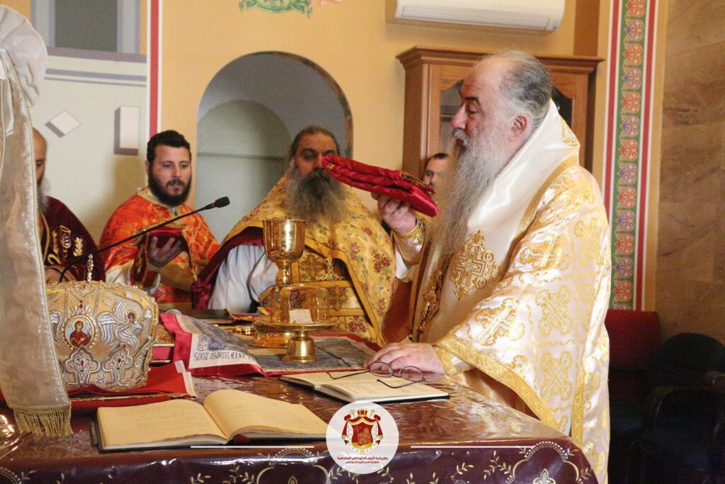 خلال عظة القداس أشار سيادته إلى أننا اليوم نحتفل بالأحد الذي بعد عيد الميلاد والذي نعيد به لتذكار القديس يعقوب أخي الرب أول رئيس أسافقة أورشليم وكم ينتابنا من الفخر نحن أبناء البطريركية المقدسية ” أم الكنائس ” في هذا اليوم الذي تفرح به الكنيسة المقدسية بعيد مؤسسها الذي بذل نفسه لأجله داعياً الجميع للبذل والتضحية حباً بالمسيح .