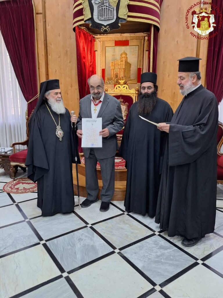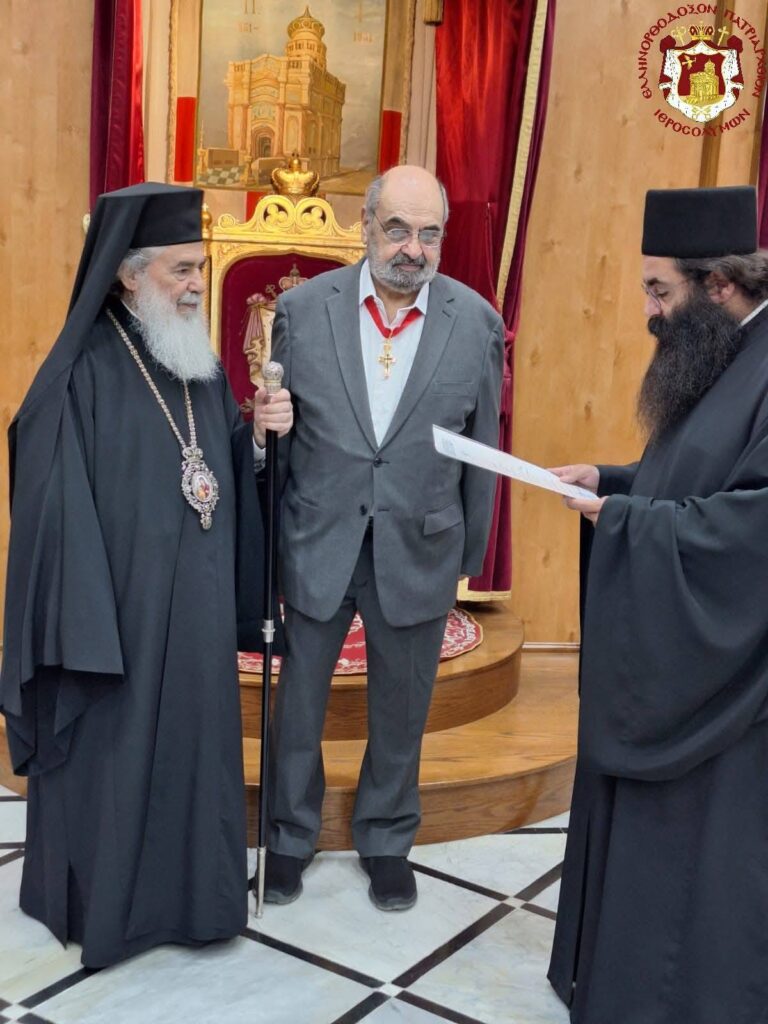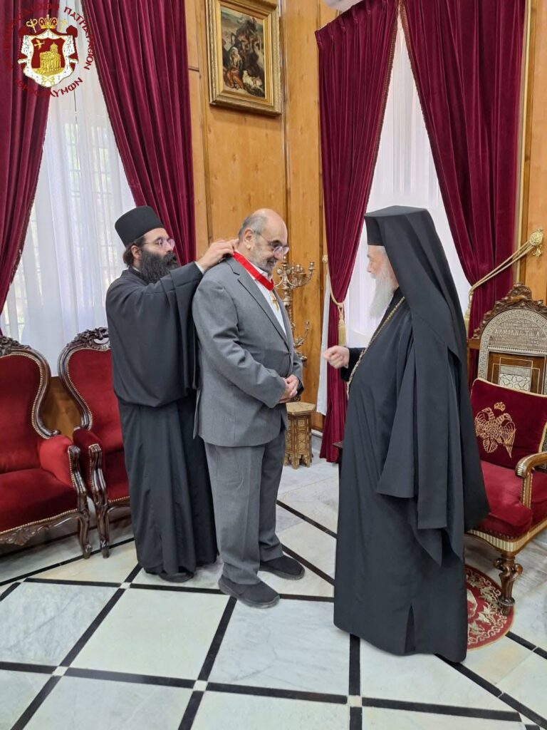 صاحب الغبطة كيريوس كيريوس ثيوفيلوس الثالث يُكرم الدكتور عوده قوّاس النائب السابق في مجلس النواب الاردني، تقديراً لمساهمته الكبيرة في مجال التعليم في مدارس البطريركية