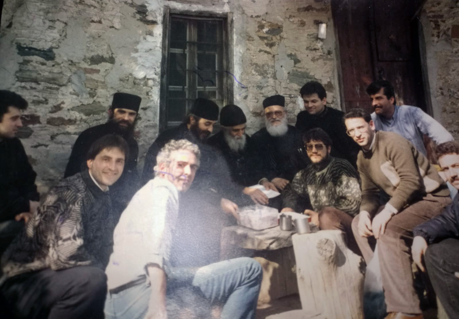 الصّورة أخِذت عَام 1990 أمام بَيت (قلاية) القِديس بايسيوس جَبل آثوس (الجبل المُقدس) اليونان