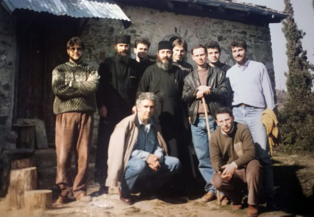 الصّورة أخِذت عَام 1990 أمام بَيت (قلاية) القِديس بايسيوس جَبل آثوس (الجبل المُقدس) اليونان