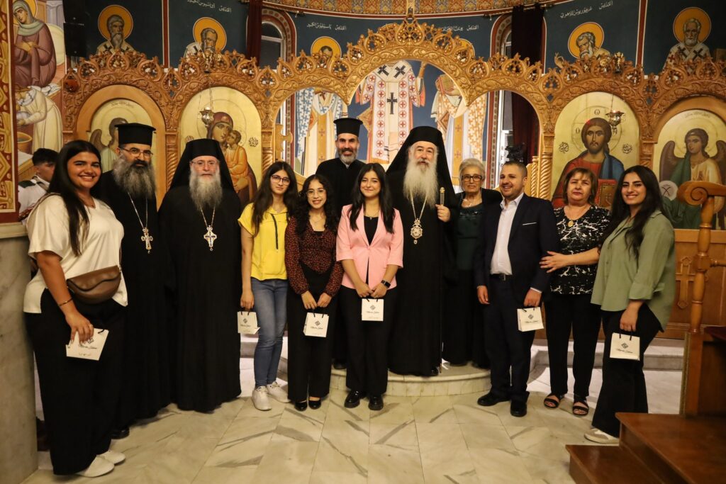 خلال خدمةِ الغروبِ مساءَ أمس ، وبعد صلاةِ الخمسِ خبزاتٍ أقيمَ زيّاحٌ احتفاليٌّ لأيقونةِ ميلادِ والدةِ الإله خارجَ الكنيسةِ بمرافقة معزوفاتِ الفرقة الموسيقيّةِ لكشّافة ومرشداتِ كنيسةِ القدّيسَين قسطنطين وهيلانة ، وفي نهاية خدمةِ الغروبِ هنّأ سيادتُهُ راعي الكنيسةِ الأبَ زكريّا ورعيّةَ الكنيسةِ بهذه المناسبةِ المقدّسةِ ثم كرّمَ مجموعةً من أبناءِ الرّعيّة الذين أنهوا دراستَهم الجامعيّةِ وامتحانَ الثّانويّةِ العامّةِ بنجاح ، وعلى رأسِهم الواعظ رعد الصّناع الذي حصل بامتيازٍ على درجةِ الدّكتوراه في تخصّص أساليبِ تدريسِ اللغةِ الإنجليزيّة ، متمنّيًا لهم النّجاحَ والتّوفيقَ في المرحلةِ الجديدةِ القادمة .