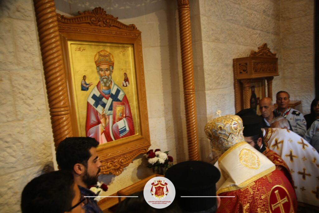مطرانيّةُ الرّومِ الأرثوذكس / المركزُ الإعلاميّ عمّان ، الجمعة 16 كانون الأوّل 2022 صورٌ من خدمةِ القدّاسِ الإلهيّ ( الّليتورجيّا الإلهيّة ) الذي ترأسَهُ سيادةُ المطرانِ خريستوفوروس من كنيسةِ القدّيس نيقولاوس للرّومِ الأرثوذكس – ماركا. عايدَ سيادتُه أبناءَ الرّعيّةِ ولجانِها بمناسبةِ عيدِ القدّيسِ نيقولاوس الذي يصادفُ الإثنينَ القادم، وكرّس المزارَ المشادَ حديثًا عند مدخلِ الكنيسةِ بوجودِ رفاتِ القدّيسِ نيقولاوس في الكنيسةِ منذ العامِ الماضي. في ختامِ الصّلاة ، باركَ سيادتُه التّعييناتِ الجديدةِ لمجموعةِ كشّافةِ ومرشداتِ الكنيسةِ خلالَ مراسمَ رسميّةٍ حضرها أبناءُ الرّعيّة. وبعدها شارك سيادتُه والآباء مع كافّةِ الّلجانِ في قاعةِ الرّعيّة مائدةِ المحبّةِ على وقعِ عزفِ المجموعةِ الكشفيّة. عاونَه في الخدمةِ قدسُ الأرشمندريت خريستوفوروس حدّاد الرئيسُ الرّوحيُّ لمحافظةِ البلقاء والأب صفرونيوس حنّا راعي الكنيسةِ والشّمامسة سيلفستروس ونيكيفوروس .